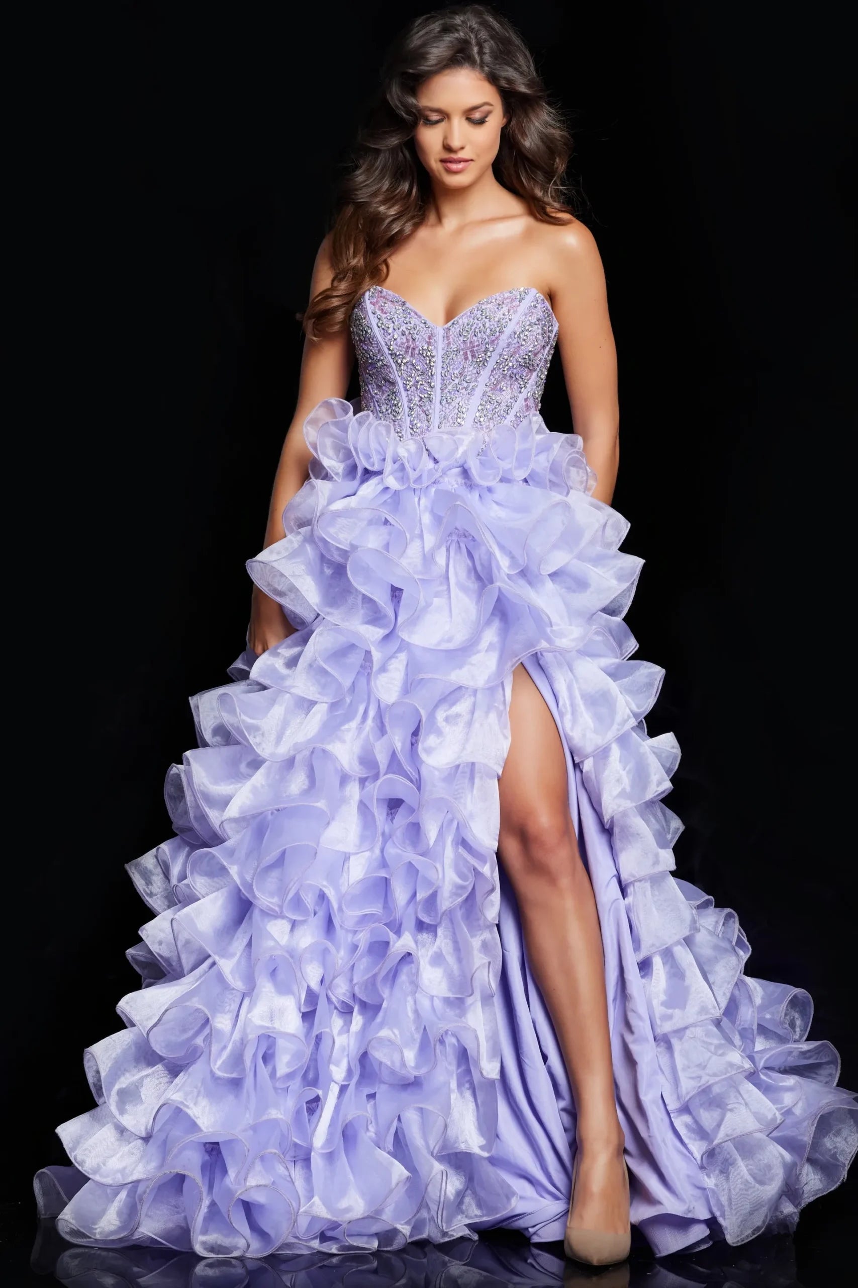 The JVN-37322 is a stunning special occasion garment from Jovani, priced at $1,040.00. Available in Black, Light Blue, Lilac, and Off-White, this piece comes in sizes 0, 00, 10, 12, 14, 16, 18, 2, 20, 22, 24, 4, 6, and 8.