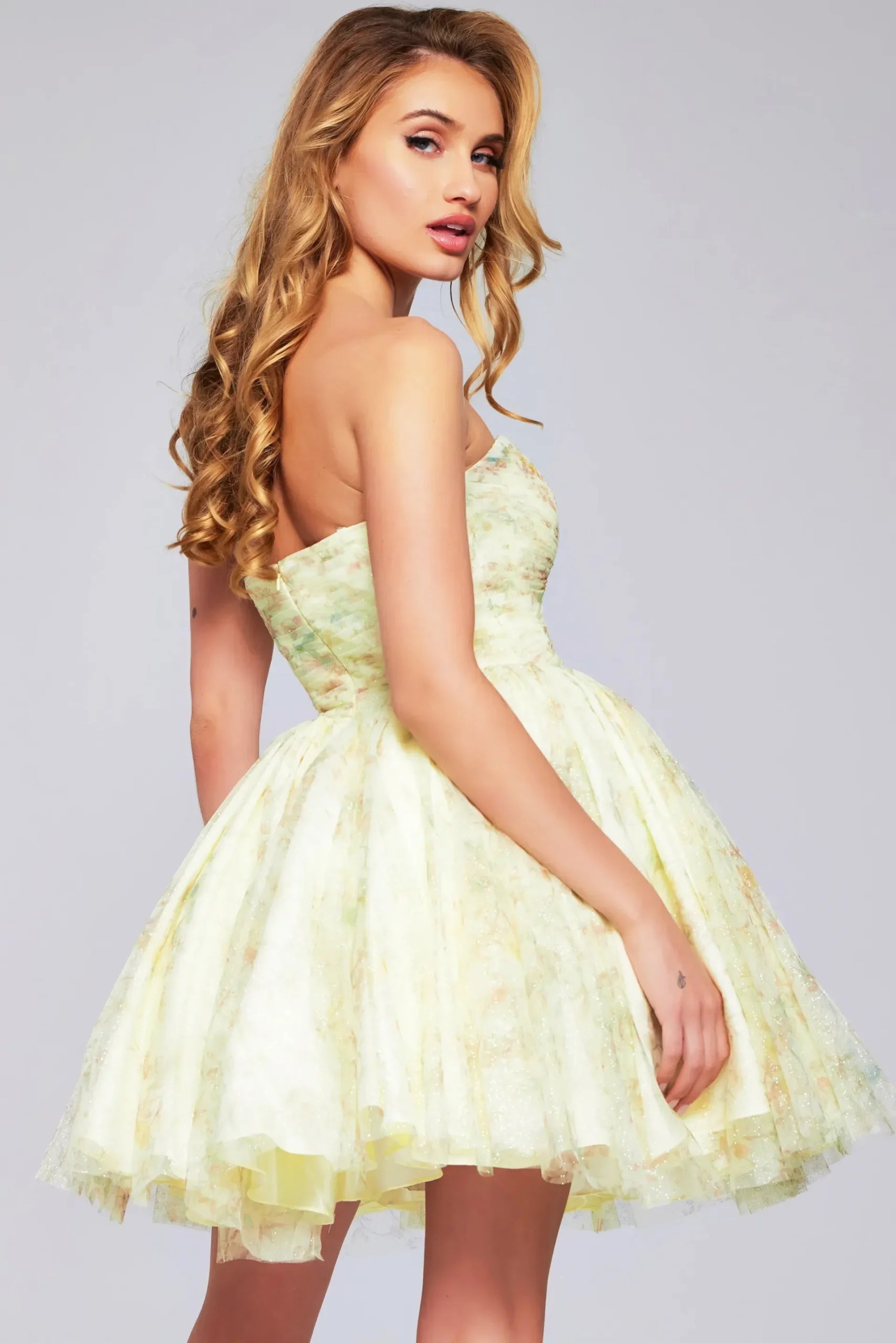 The JVN-40374 is a stunning prom dress from Jovani, priced at $300. Available in a light-yellow color and sizes ranging from 00 to 24, including 0, 2, 4, 6, 8, 10, 12, 14, 16, 18, 20, and 22, ensuring a perfect fit for every silhouette.