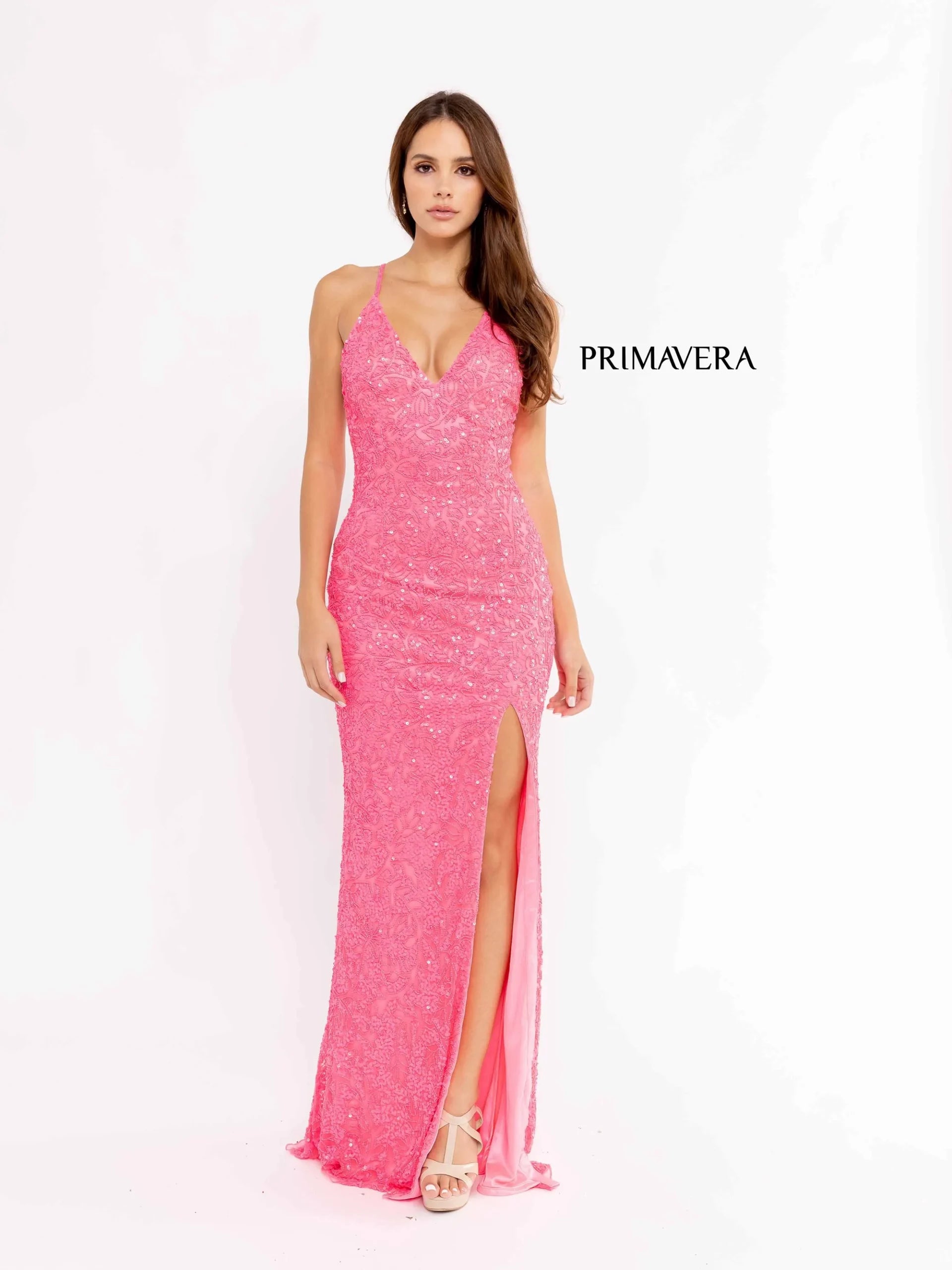 The PRC-3938 is a stunning prom dress from Primavera Couture, priced at $449.00. Available in black, coral, emerald, neon pink, and purple. Sizes range from 000 to 18, including 0, 00, 2, 4, 6, 8, 10, 12, 14, and 16. Perfect for making a statement.