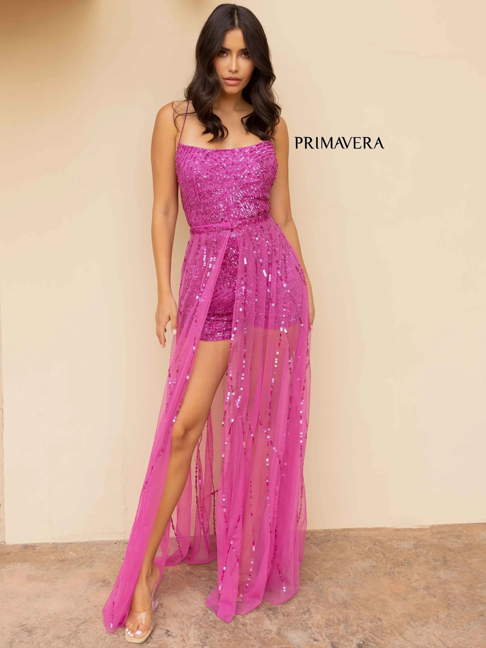 The PRC-3972 is a stunning prom dress from Primavera Couture, available for $449.00. It comes in Black, Bright Blue, and Fuchsia. Sizes range from 000 to 18, including 0, 00, 2, 4, 6, 8, 10, 12, 14, and 16.
