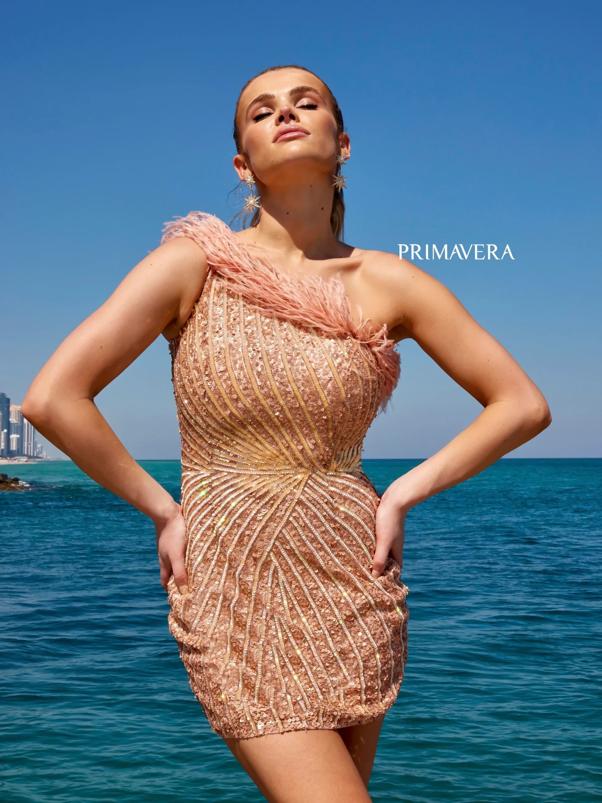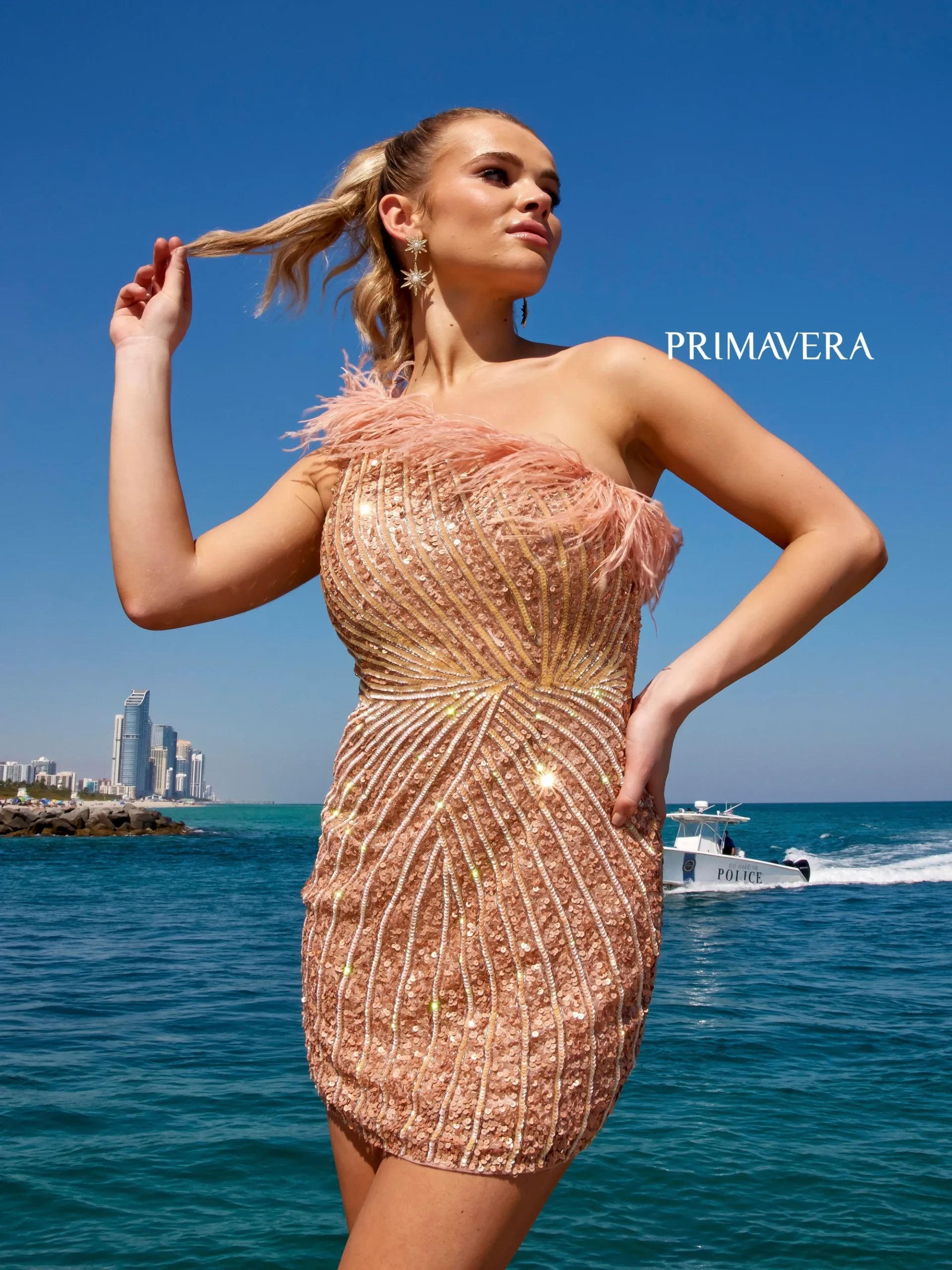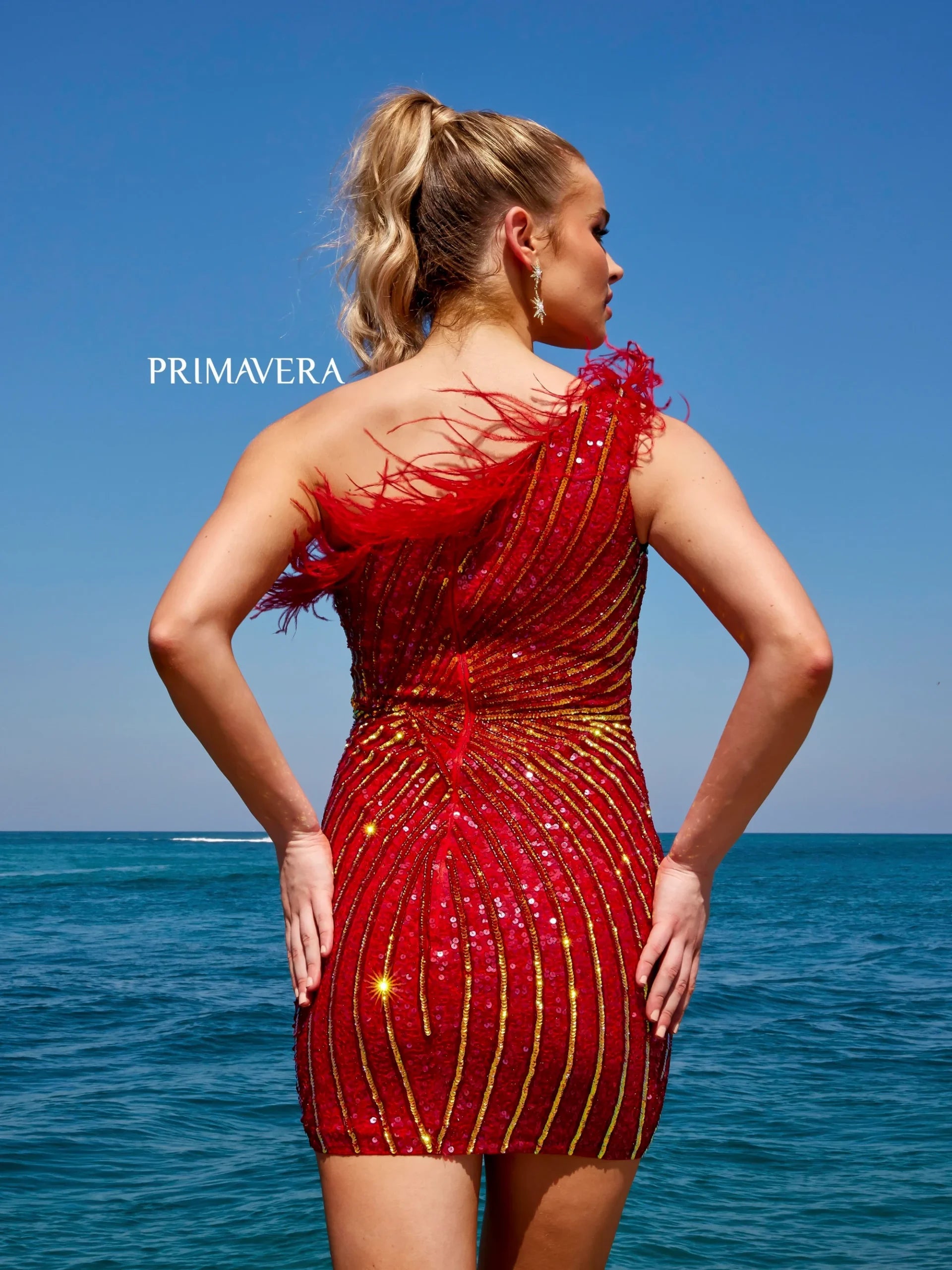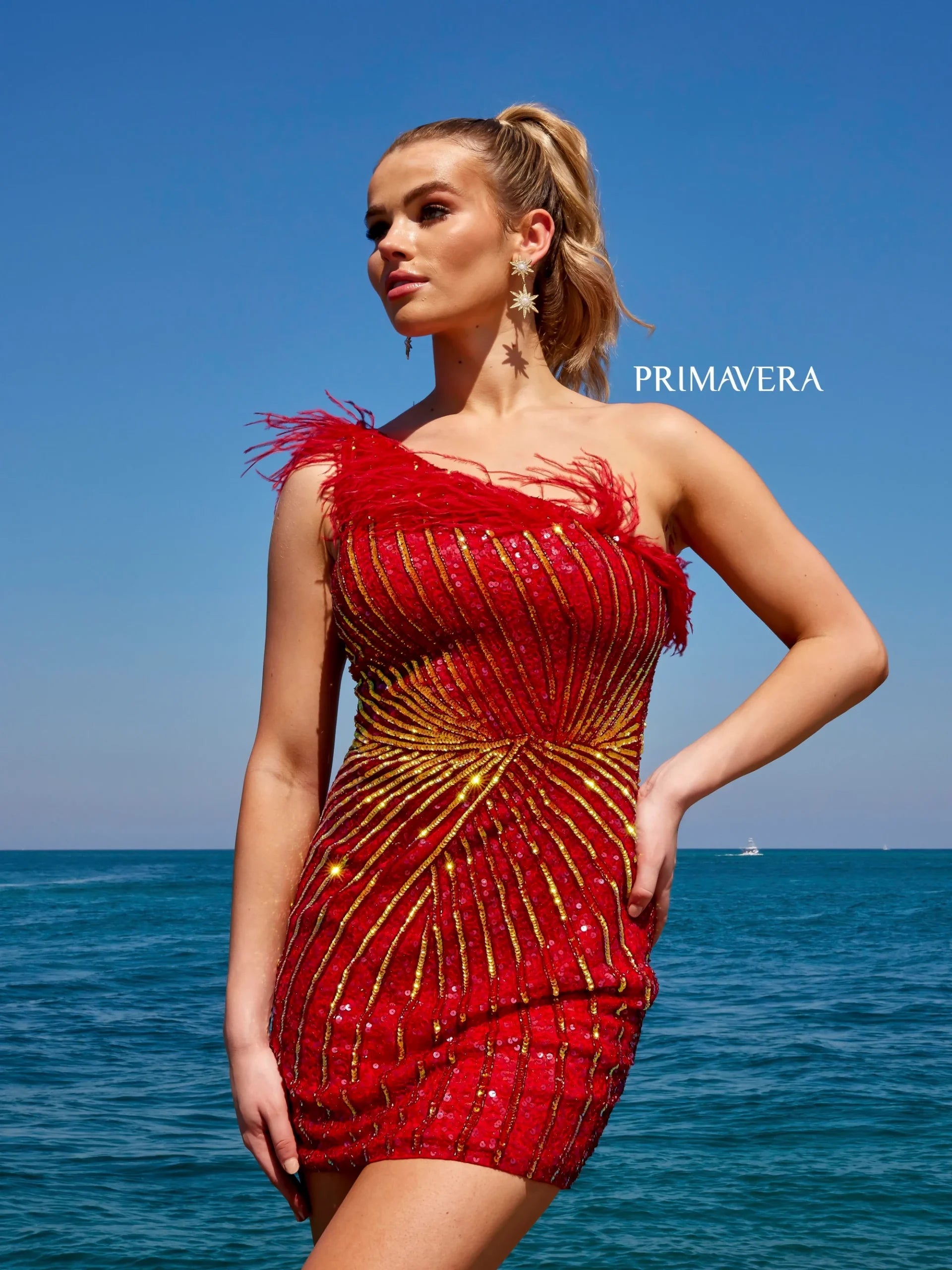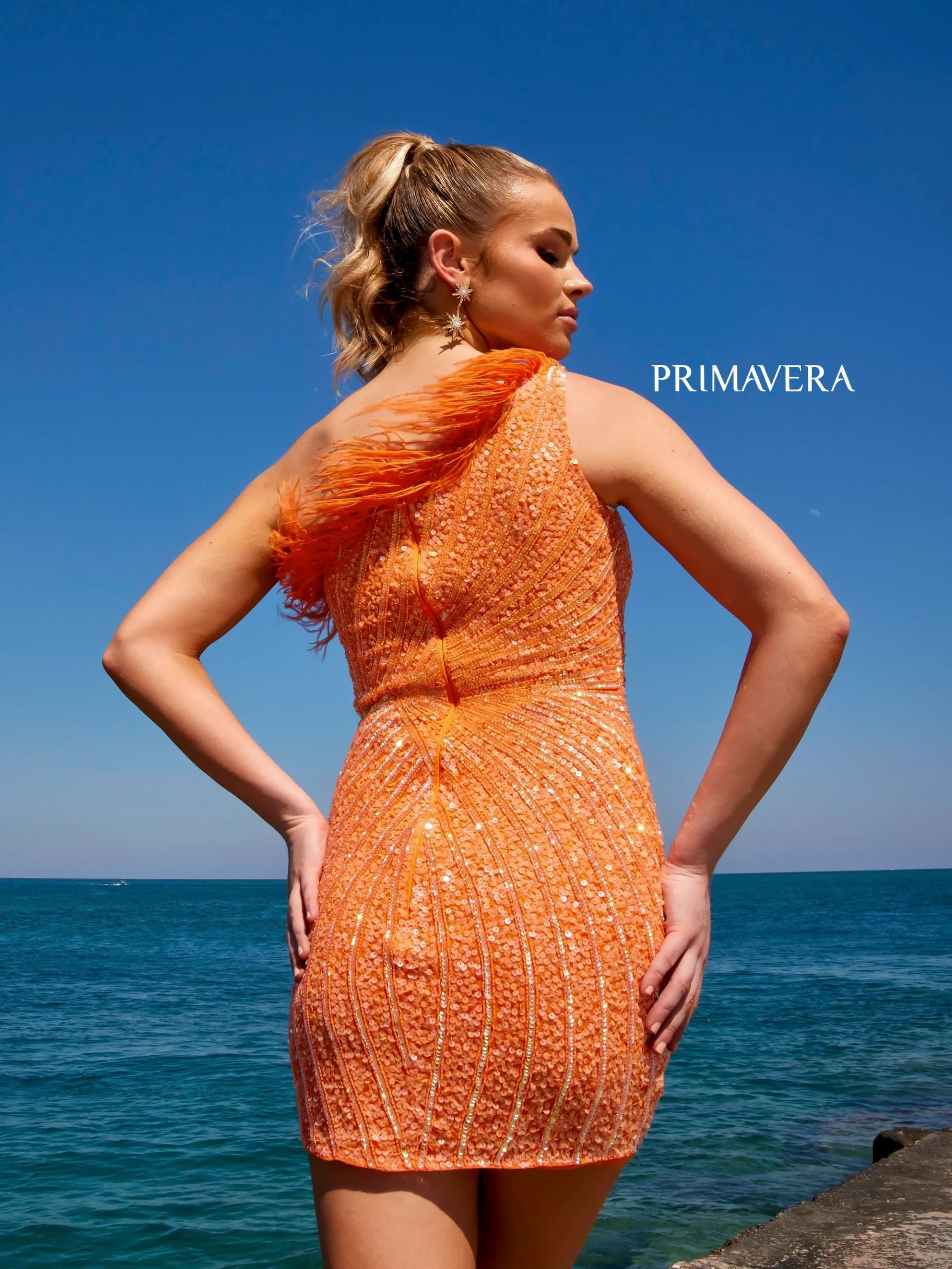 PRC-4002 is a stunning prom dress from Primavera Couture, priced at $389. Available in apricot, orange, platinum, red, and royal blue. Sizes range from 00 to 18, including 0, 2, 4, 6, 8, 10, 12, 14, and 16.