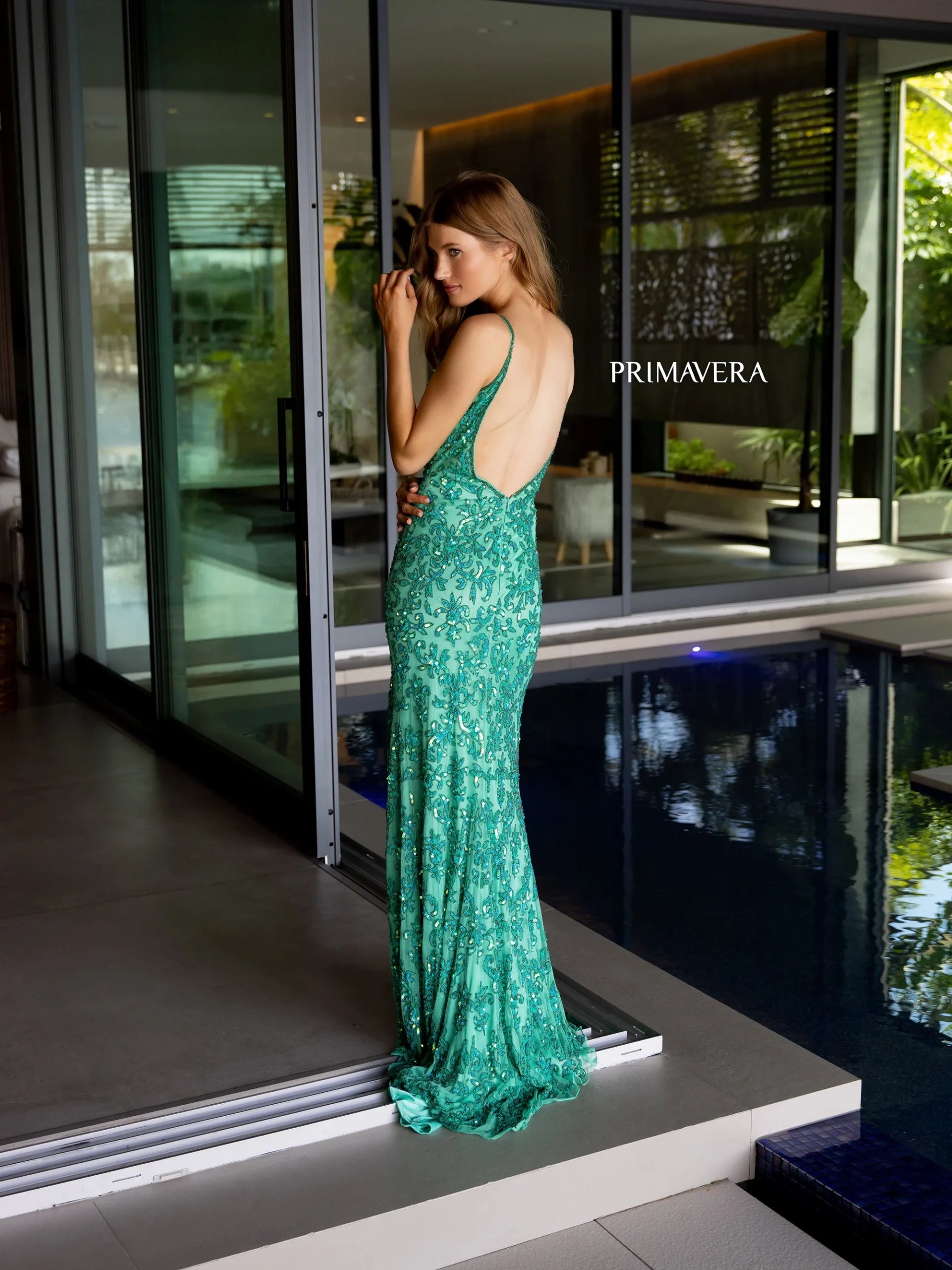 PRC-4115 is a special occasion item from Primavera Couture, offered at $499.00. Available in Black, Coffee, Jade, and Orchid colors. Sizes range from 0, 00, 000 to 18, including 2, 4, 6, 8, 10, 12, 14, and 16.