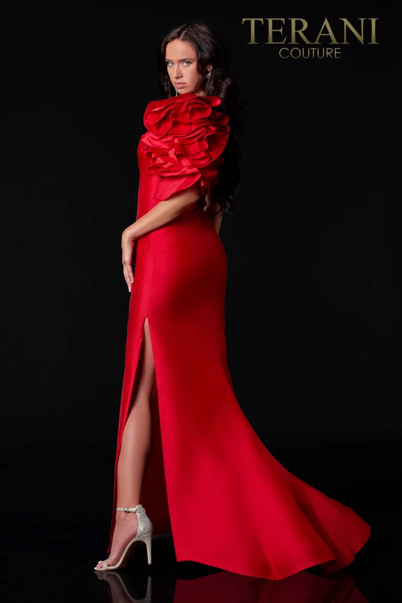 UNK-2111 E4727 is a Terani Couture special occasion item available in Red. Offered in sizes 0, 2, 4, 6, 8, 10, 12, 14, 16, 18, 20, 22, and 24. Retails for $473.00.