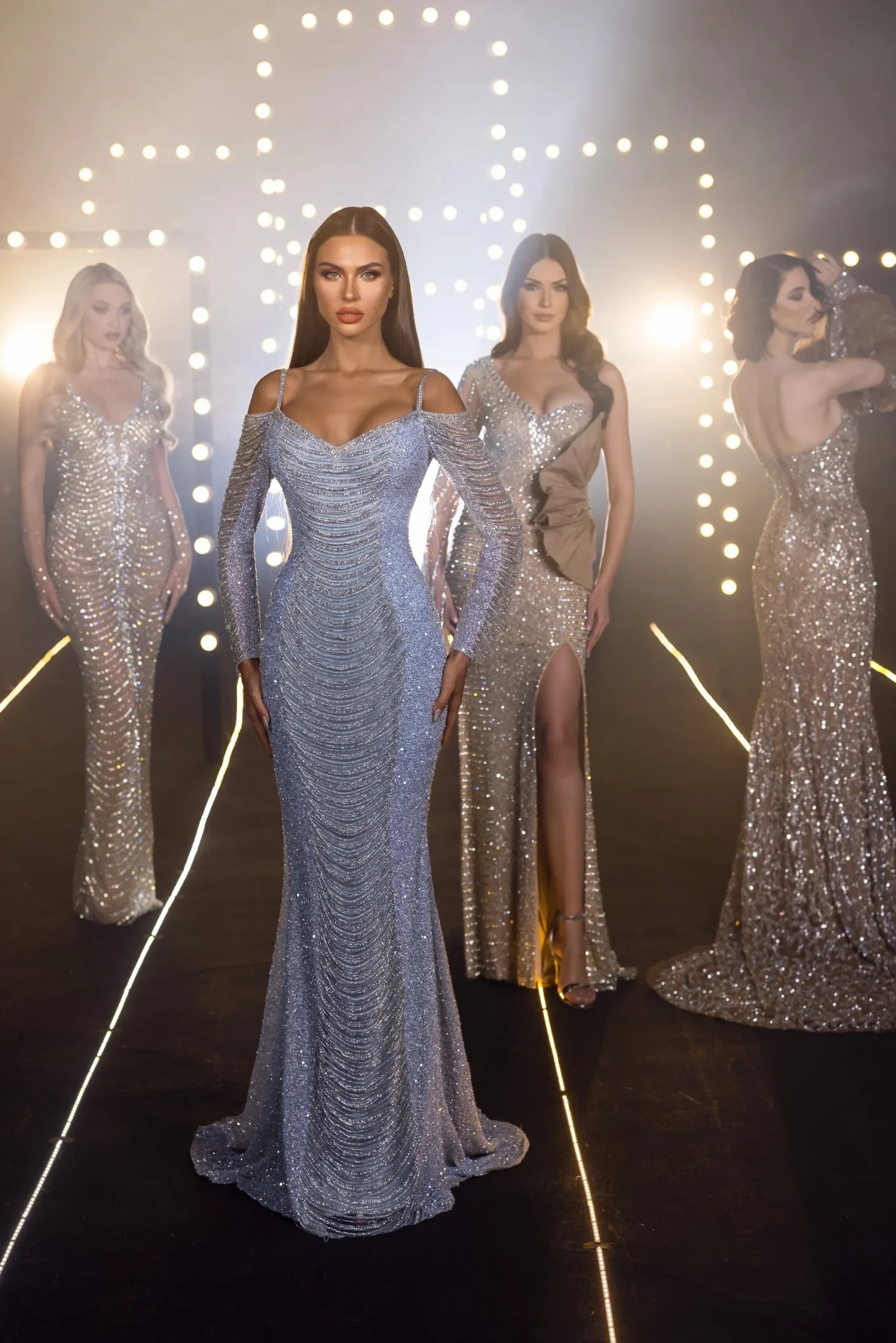 UNK-HF110131 is a special occasion garment from Chic & Holland, offered in sizes 0-28. Available in Black, Blush, Bottle Green, Dusty Rose, Golden, Ivory, lavender, Mint, Nude, Periwinkle, Silver/Grey, Ultra Light Silver, and Wine. Priced at $1,700.00.