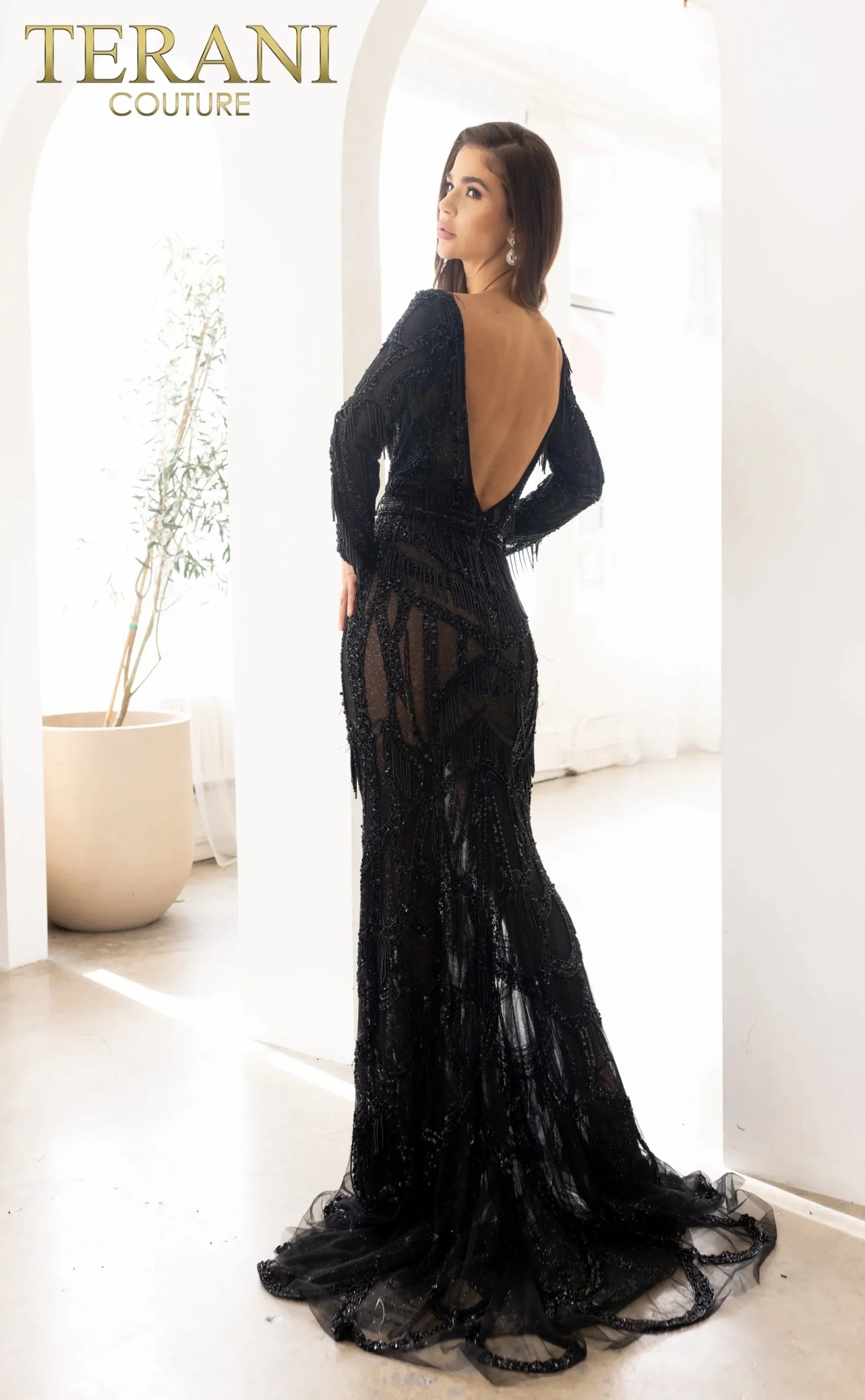 UNK-241 GL2610 is a stunning pageant gown from Terani Couture. Available in Black/Nude. Sizes 0, 2, 4, 6, 8, 10, 12, 14, 16, 18, 20, 22, and 24. Priced at $1,749.00.