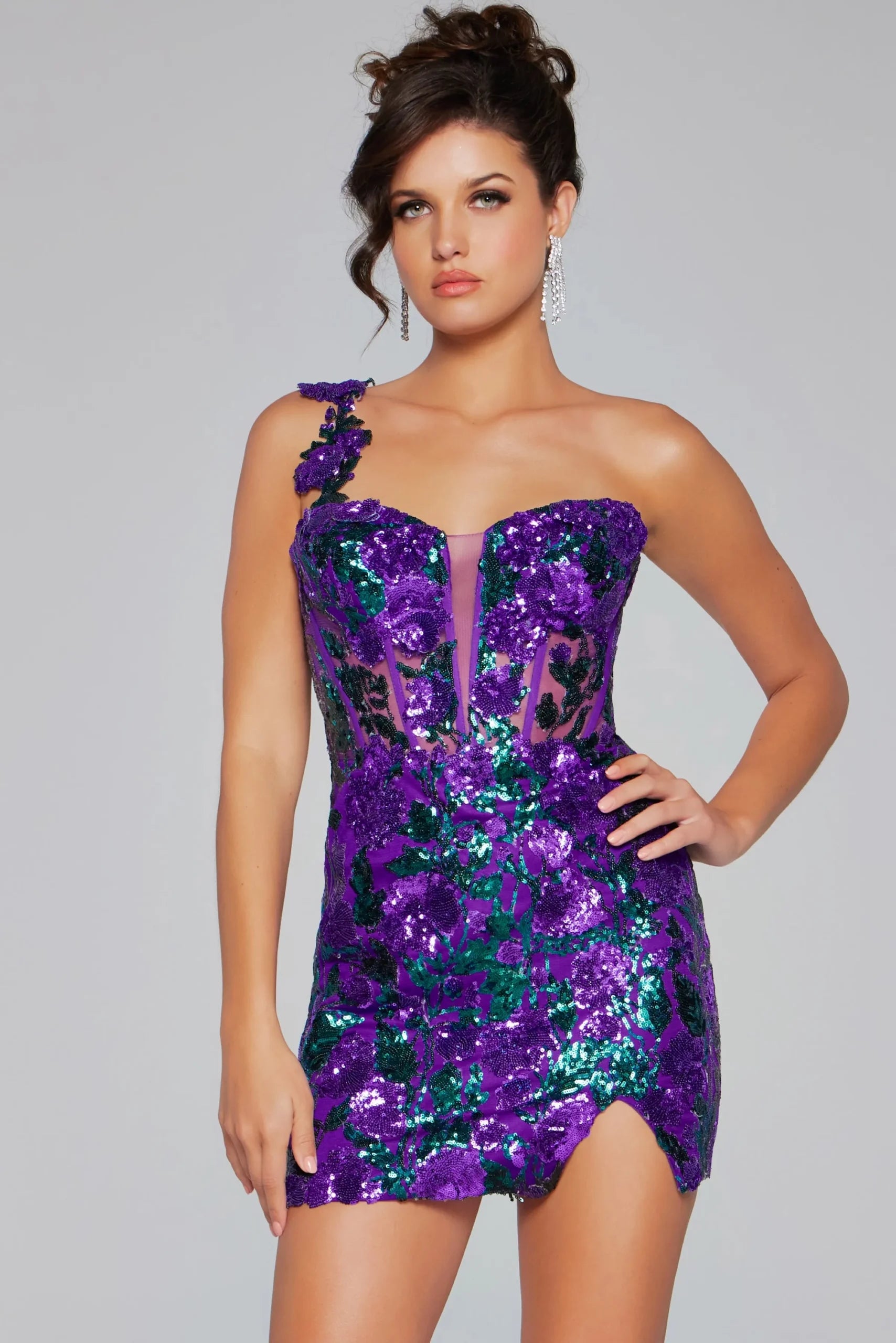 JVN-40647 is a stunning purple prom dress from Jovani. Available in sizes 0, 00, 10, 12, 14, 16, 18, 2, 20, 22, 24, 4, 6, and 8. Priced at $390.00. Perfect for making a statement.