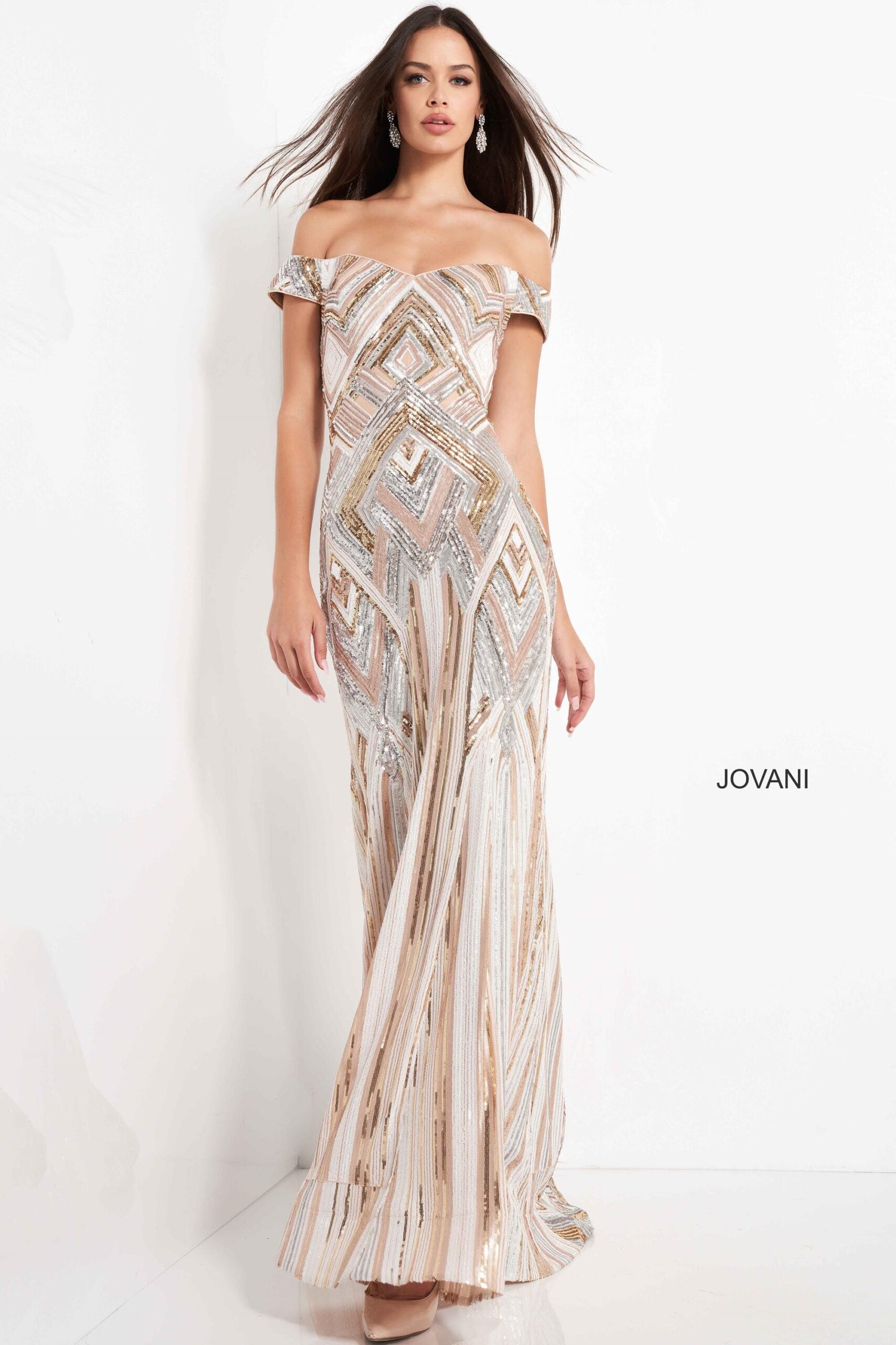 The Jovani JVN-4813 prom dress is available in nude/multi and sizes 0-24. This stunning gown is priced at $725.00. Currently no sale price is offered. Find your perfect fit and make a statement at your prom.