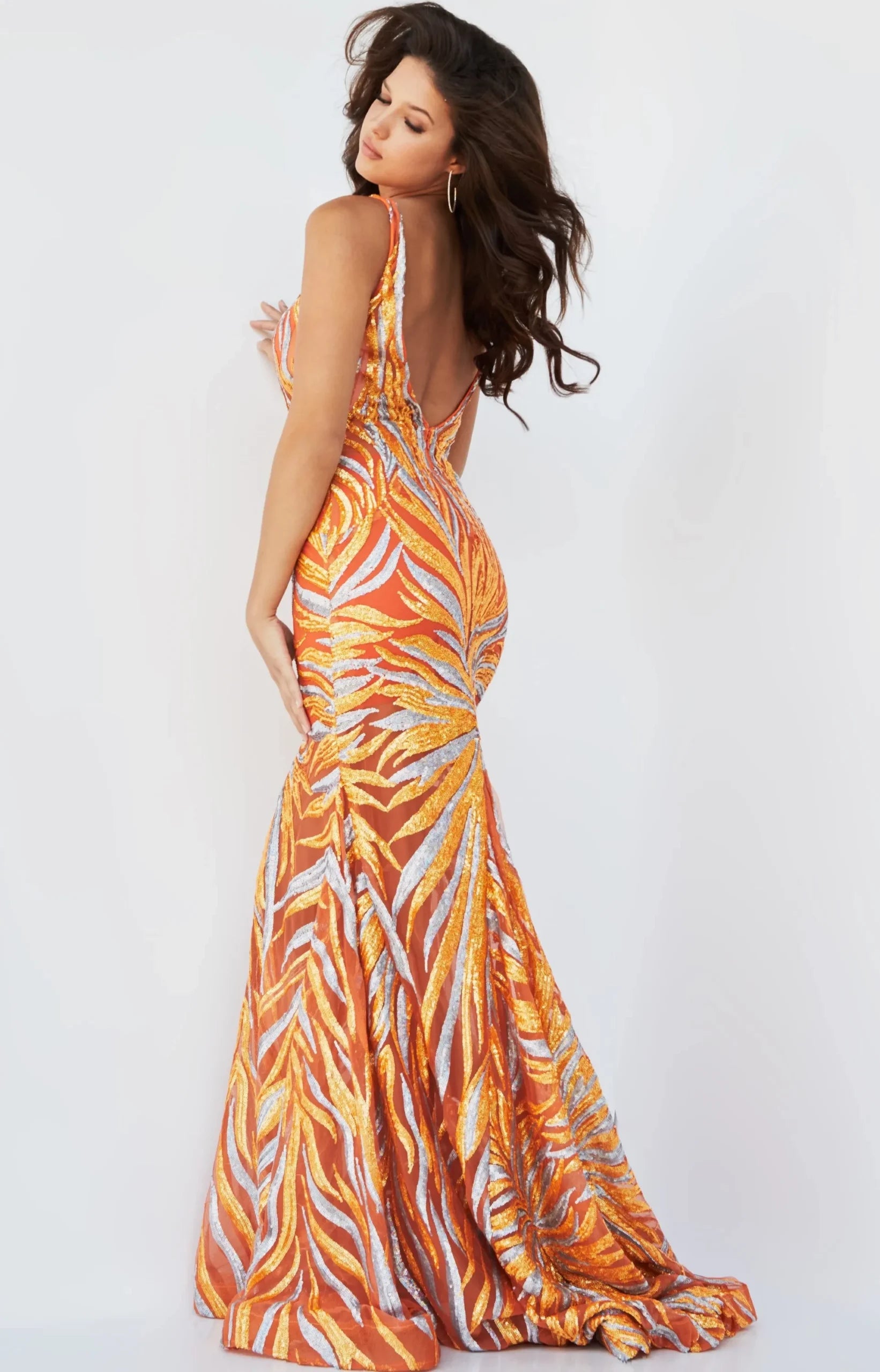 The Jovani JVN-6153 prom dress is available in Light Blue/Silver, Navy/Silver, and Orange/Silver. Sizes range from 00 to 24, ensuring a perfect fit for your special occasion. Priced at $672.00, this elegant gown is a stunning choice for prom night. Select your preferred color and size for a sophisticated and memorable look.