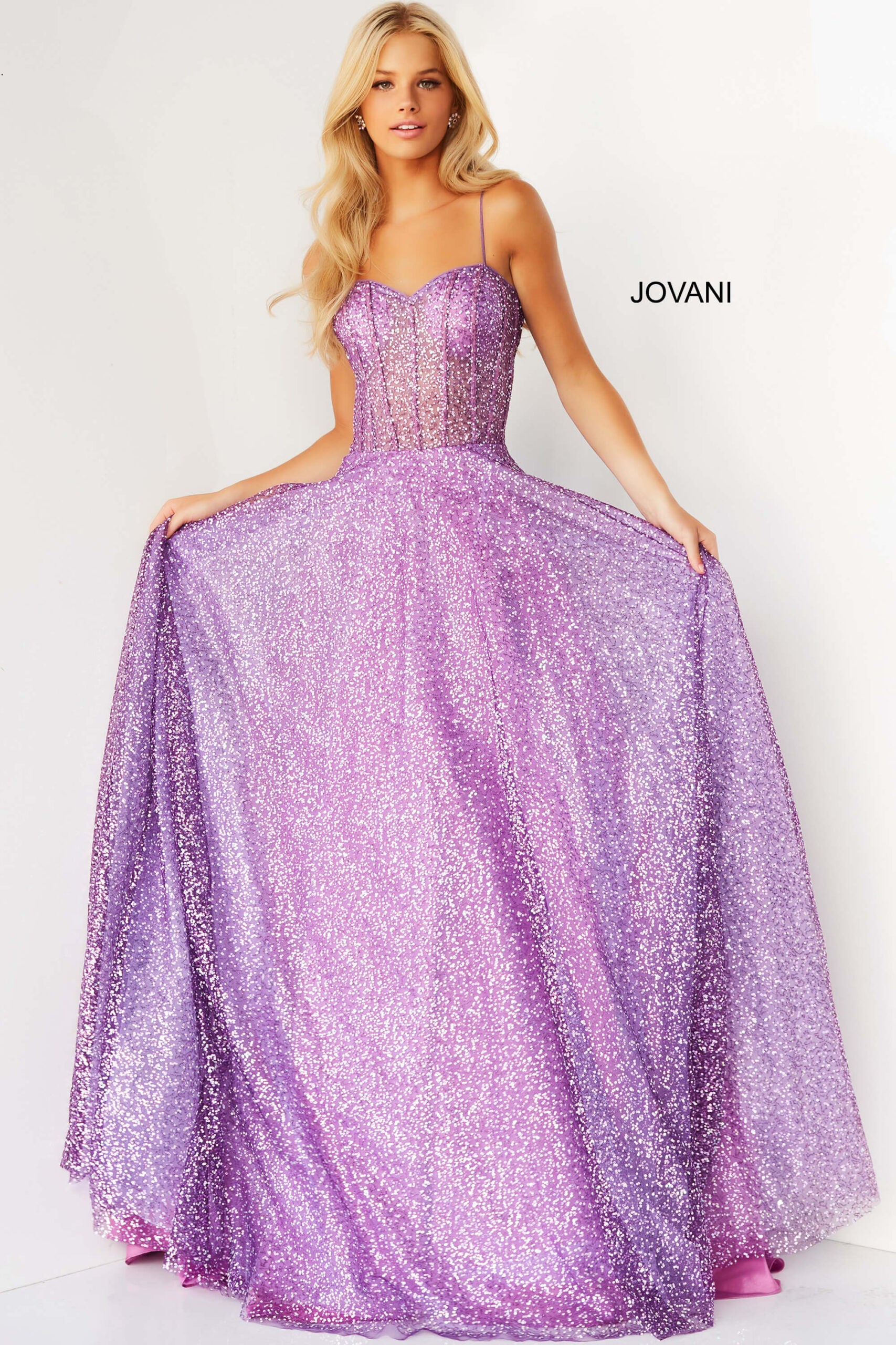 The Jovani JVN-7423 prom dress is a stunning purple gown available in sizes 00-24. Priced at $788.00, this elegant design is perfect for your special occasion. A variety of sizes ensures a perfect fit for every figure. This Jovani creation is a sophisticated choice for prom night.