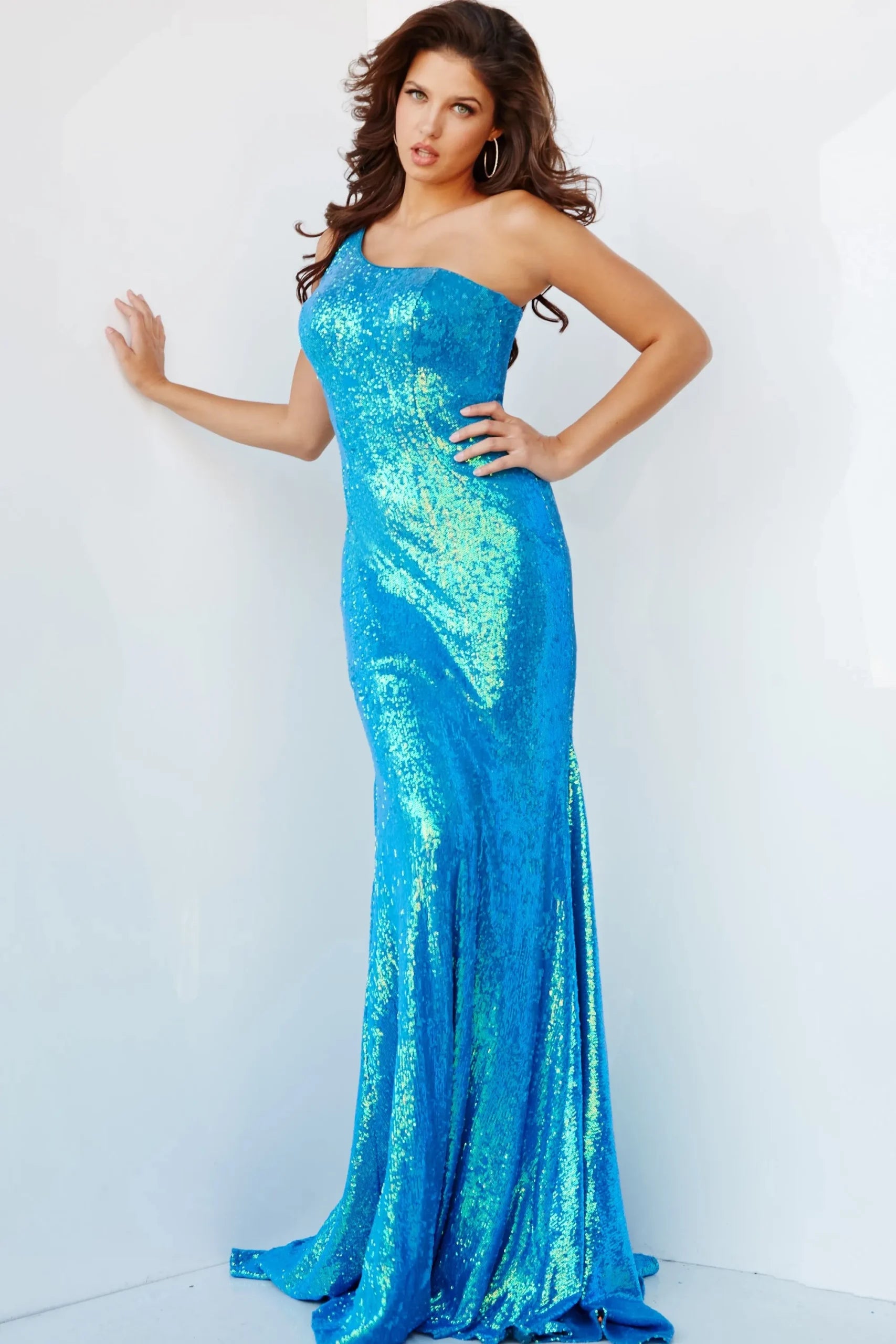 Make every night a night to remember with JVN-8177. This prom dress from Jovani is available for $725.00 in Iridescent Fuchsia, Iridescent Orange, and Iridescent Royal. Sizes range from 00 to 24.