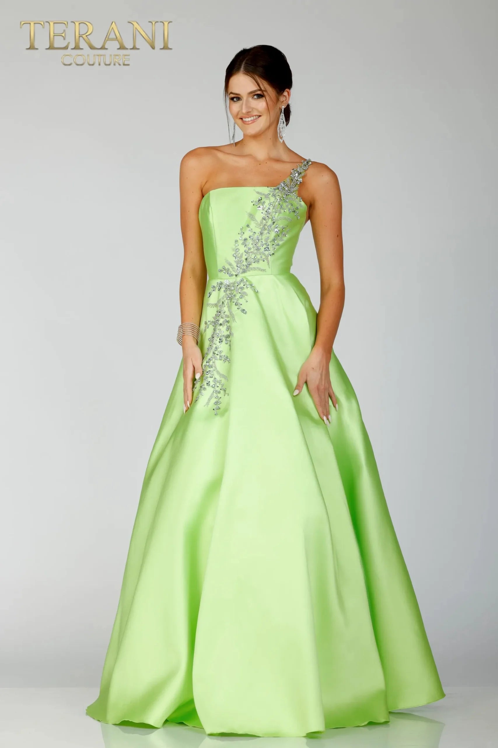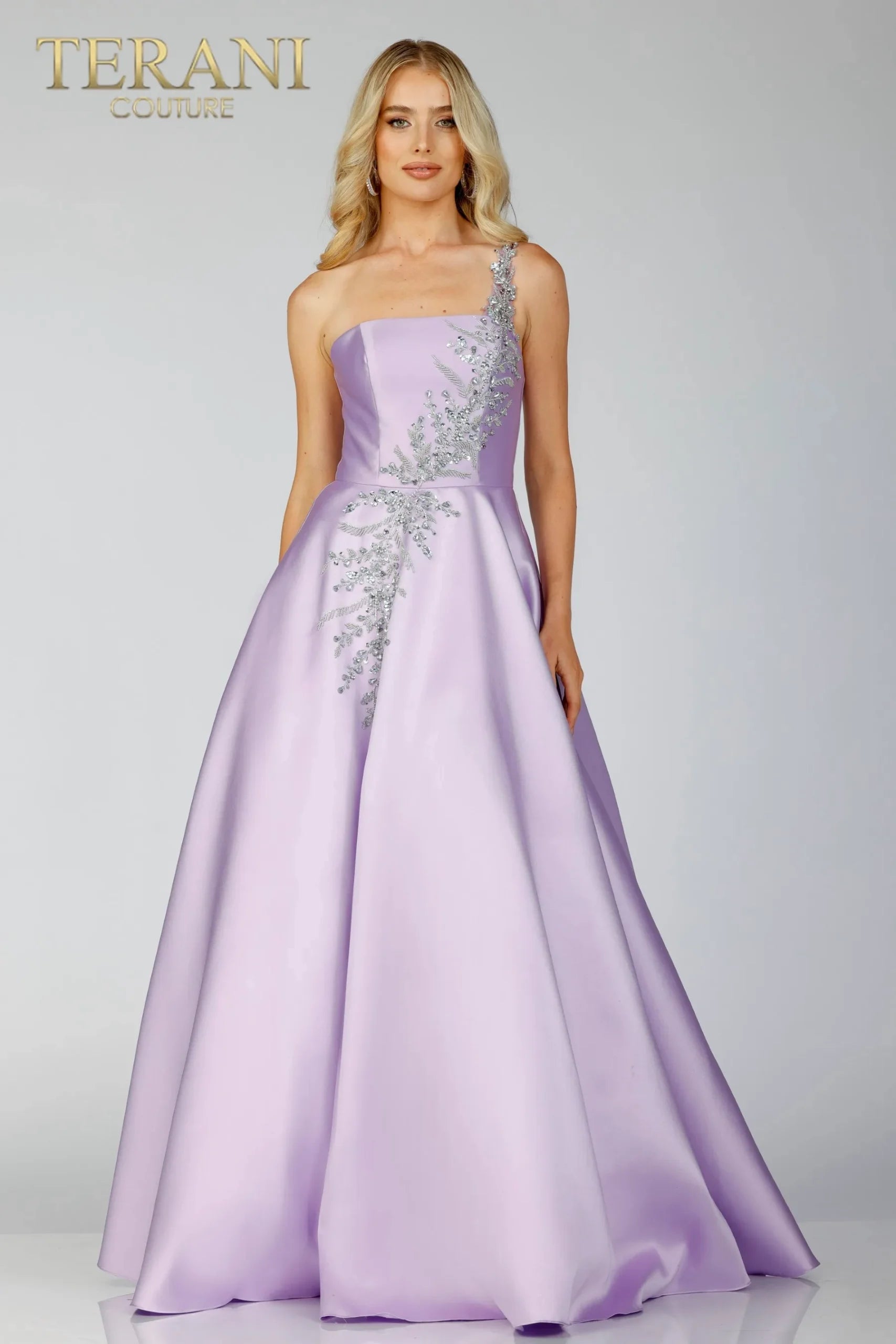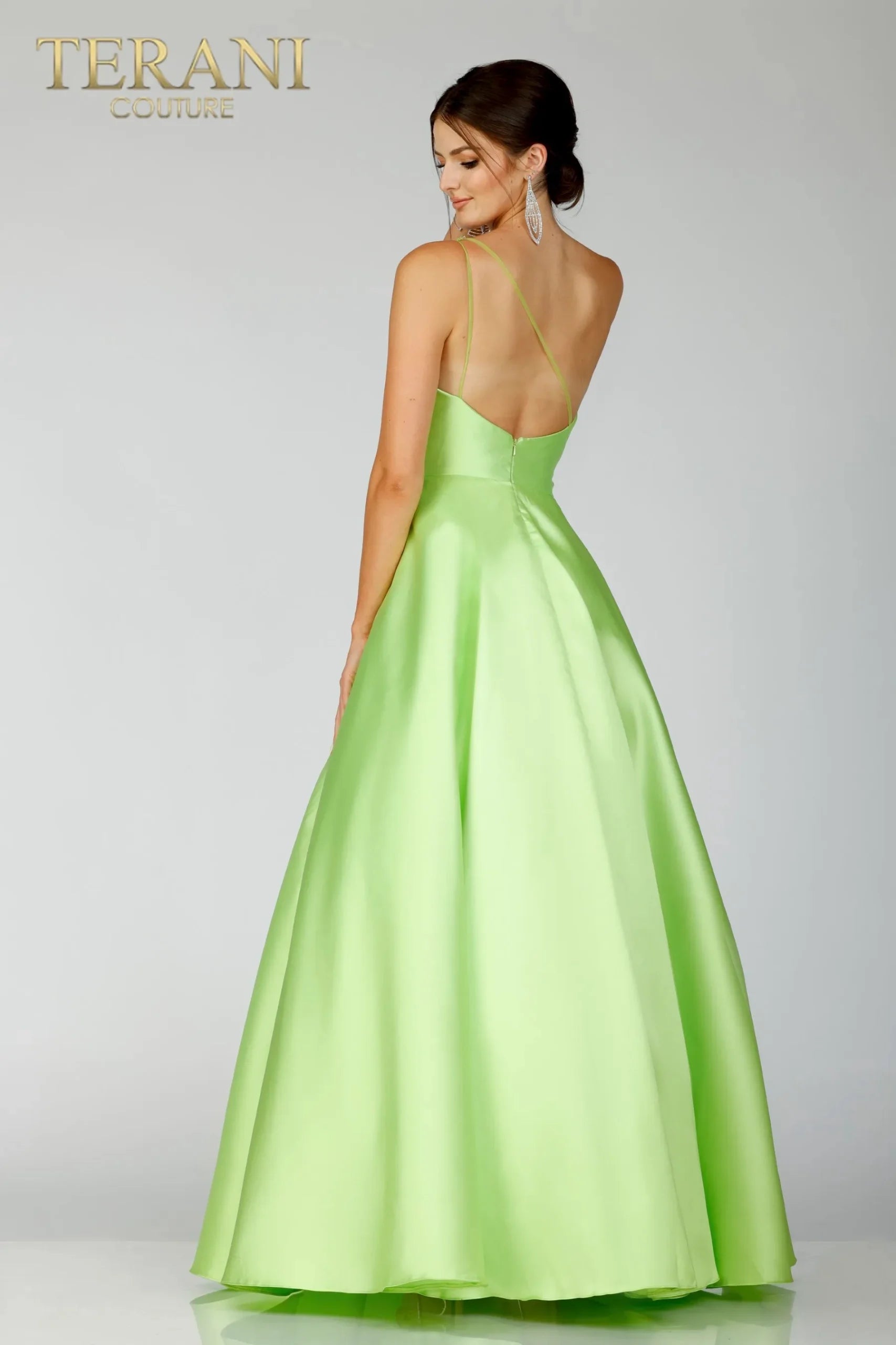 UNK-231 P0175 is a stunning prom dress from Terani Couture, offered at $385.00. Available in lavender, lime, and slate colors. Sizes range from 00 to 24, including 0, 2, 4, 6, 8, 10, 12, 14, 16, 18, 20, and 22.