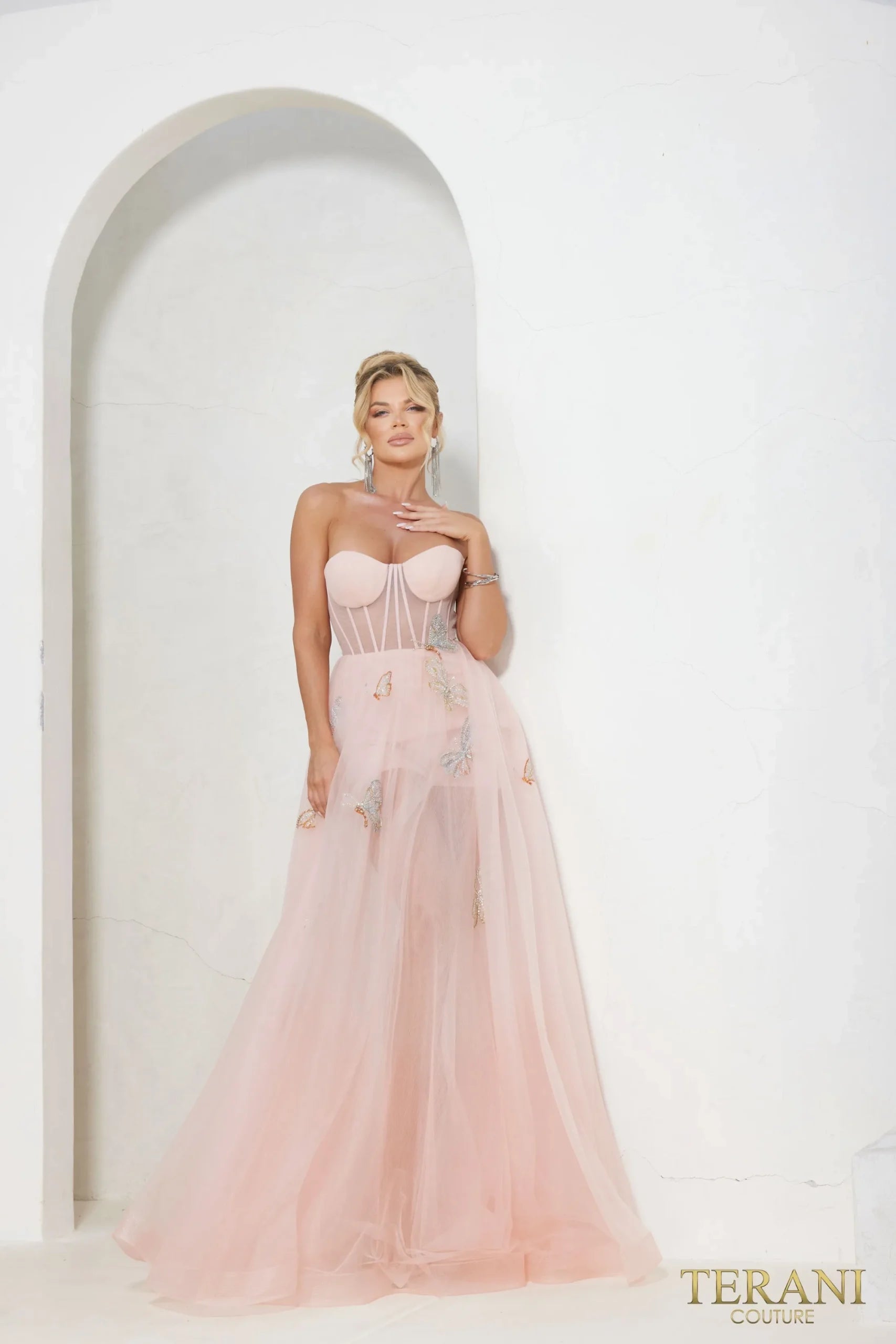 UNK-241 P2087 is a stunning Terani Couture prom dress available in Black and Blush. This elegant gown is offered in sizes 0, 00, 2, 4, 6, 8, 10, 12, 14, 16, 18, 20, 22, and 24. Priced at $429.00, this dress is perfect for making a memorable entrance.