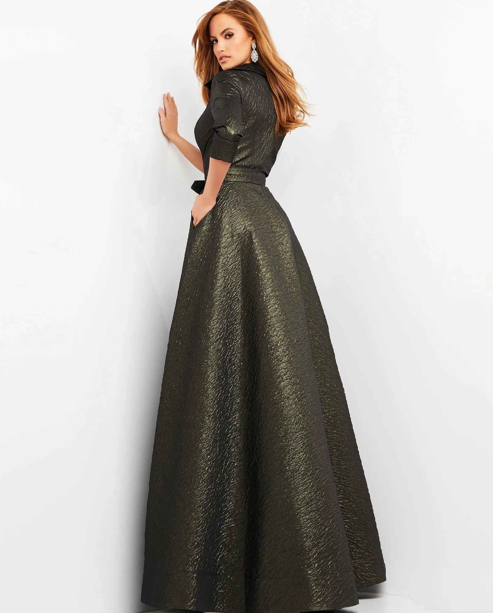 The Jovani JVN-5075 is a sophisticated special occasion garment priced at $1040.00. Available in olive, this elegant piece is offered in a wide range of sizes: 00, 0, 2, 4, 6, 8, 10, 12, 14, 16, 18, 20, 22, and 24. Currently, no sale price is offered.
