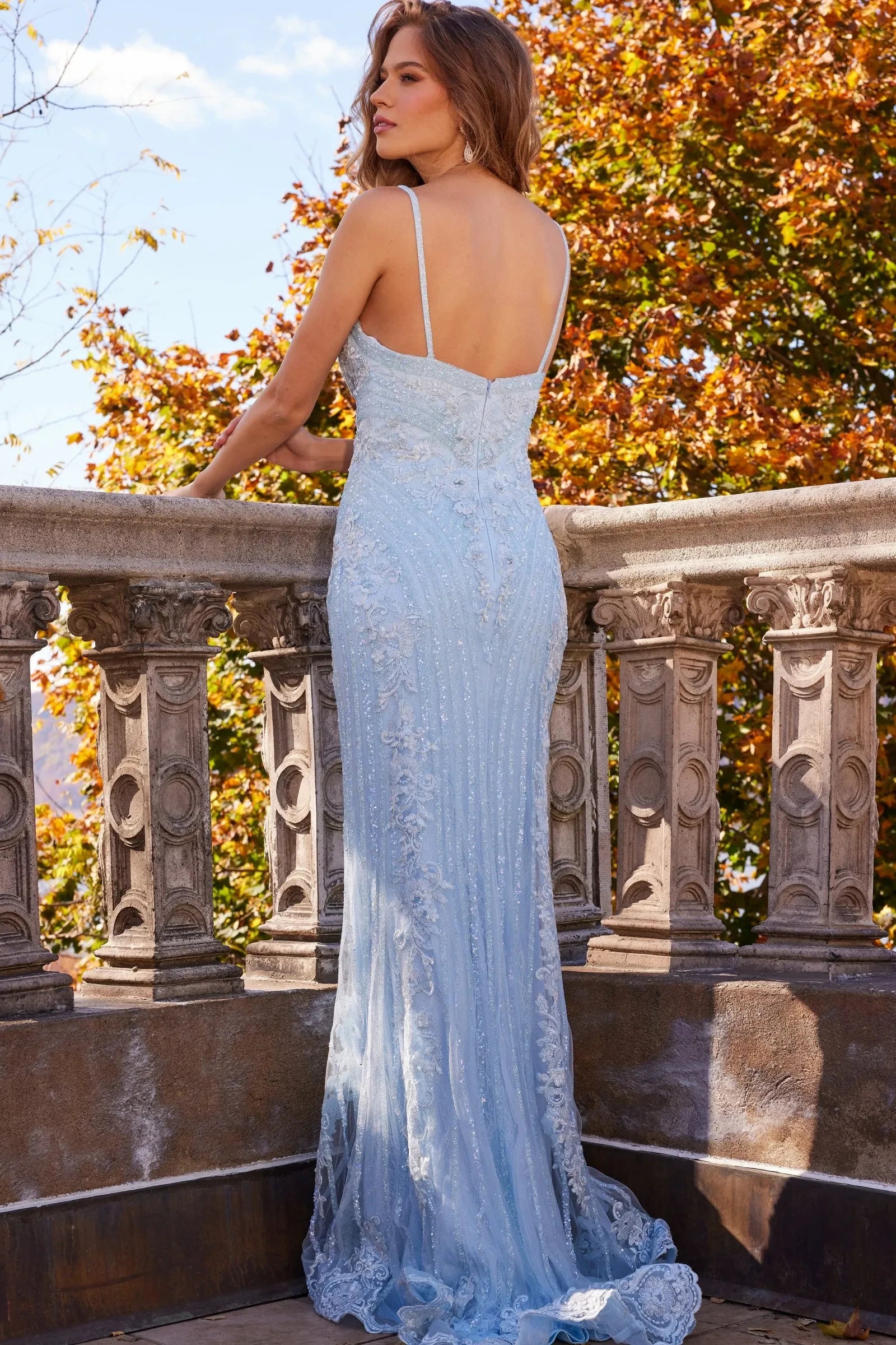 JVN-5752 is a Jovani special occasion dress, priced at $714.00. Available in Hot-Pink, Light Blue, Lilac, and Silver/Nude. Sizes range from 00 to 24, including 0, 2, 4, 6, 8, 10, 12, 14, 16, 18, 20, and 22.