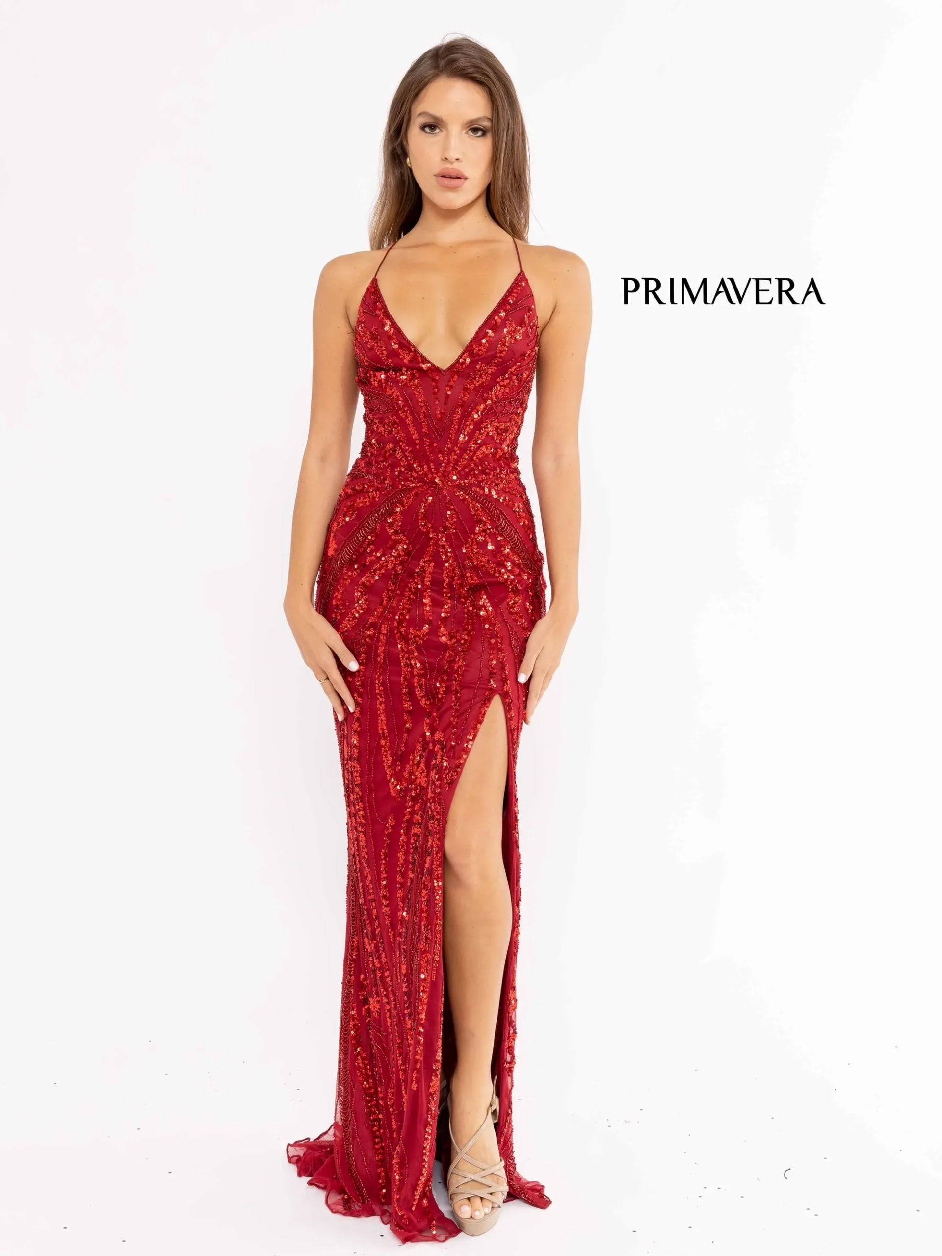 The PRC-3958 is a special occasion dress from Primavera Couture, available for $425.00. It comes in a variety of colors including Emerald, Fuchsia, Peacock, Red, and Royal Blue. Sizes range from 000 to 18, including 0, 00, 2, 4, 6, 8, 10, 12, 14, and 16.