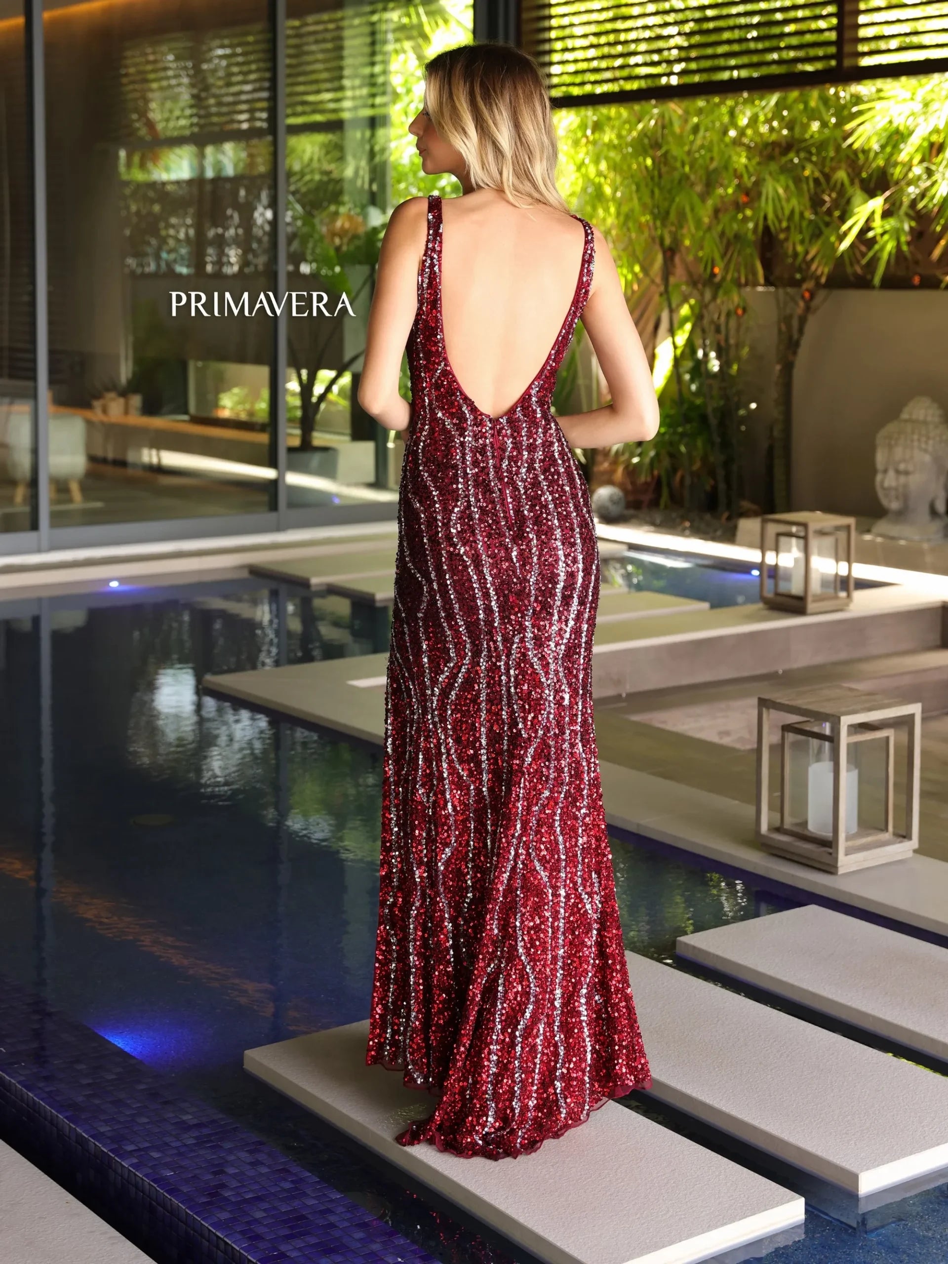 The PRC-4103 is a stunning special occasion piece from Primavera Couture, priced at $485.00. Available in Burgundy, Emerald, and Midnight, it comes in sizes 0, 00, 000, 2 through 18, offering a perfect fit for various body types. This exquisite design ensures you'll make a lasting impression.