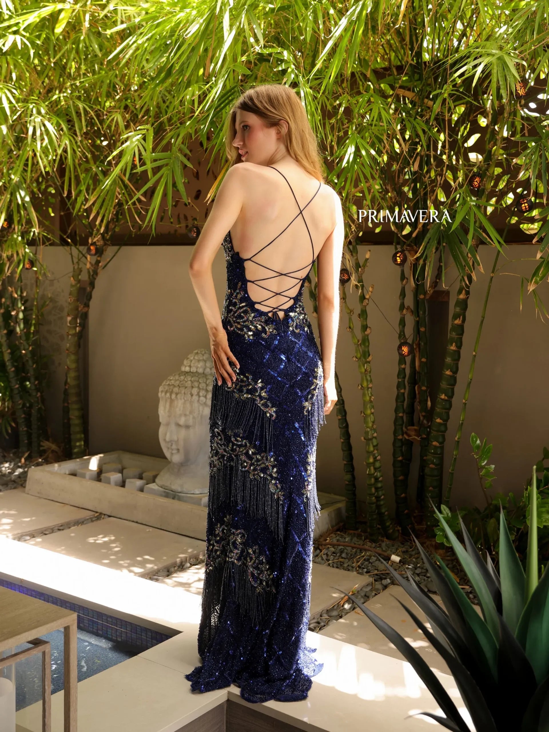 PRC-4111 is a special occasion item from Primavera Couture, available for $595.00. It comes in Black, Midnight, Peacock, and Platinum. Sizes range from 000 to 18, including 0, 00, 2, 4, 6, 8, 10, 12, 14, and 16.