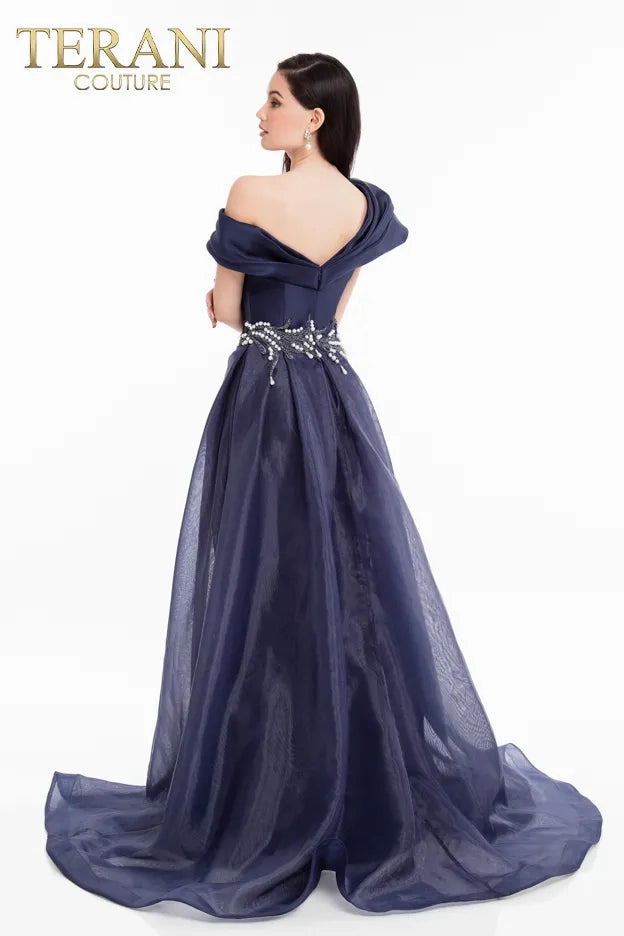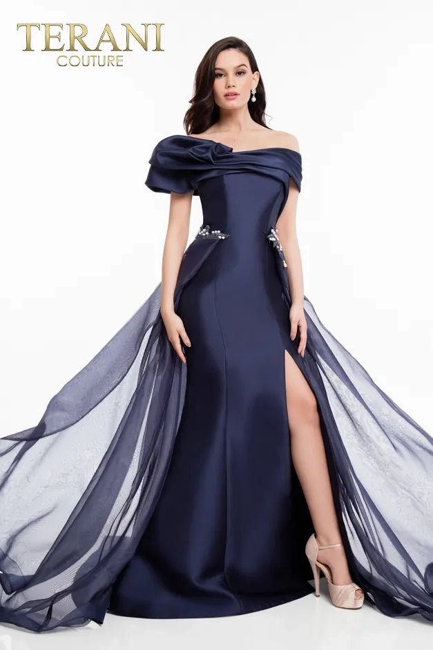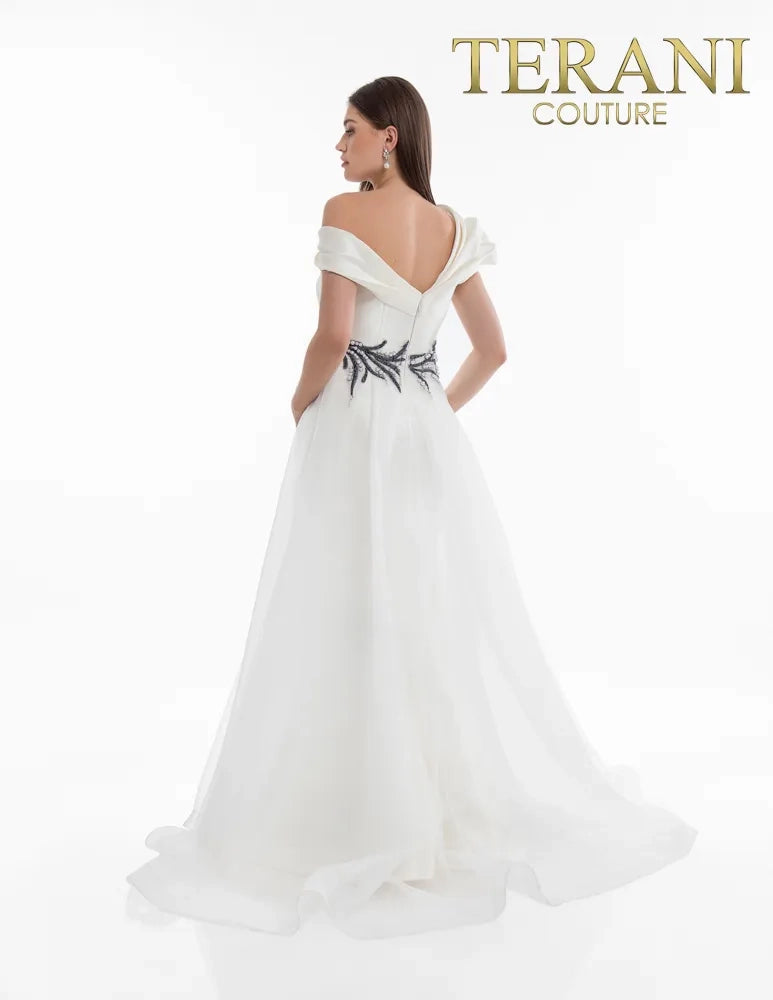 UNK-1821 E7100 is a Terani Couture special occasion dress, available in Ivory and Navy. Offered in sizes 0, 2, 4, 6, 8, 10, 12, 14, 16, 18, 20, 22, and 24. The price is $858.00.