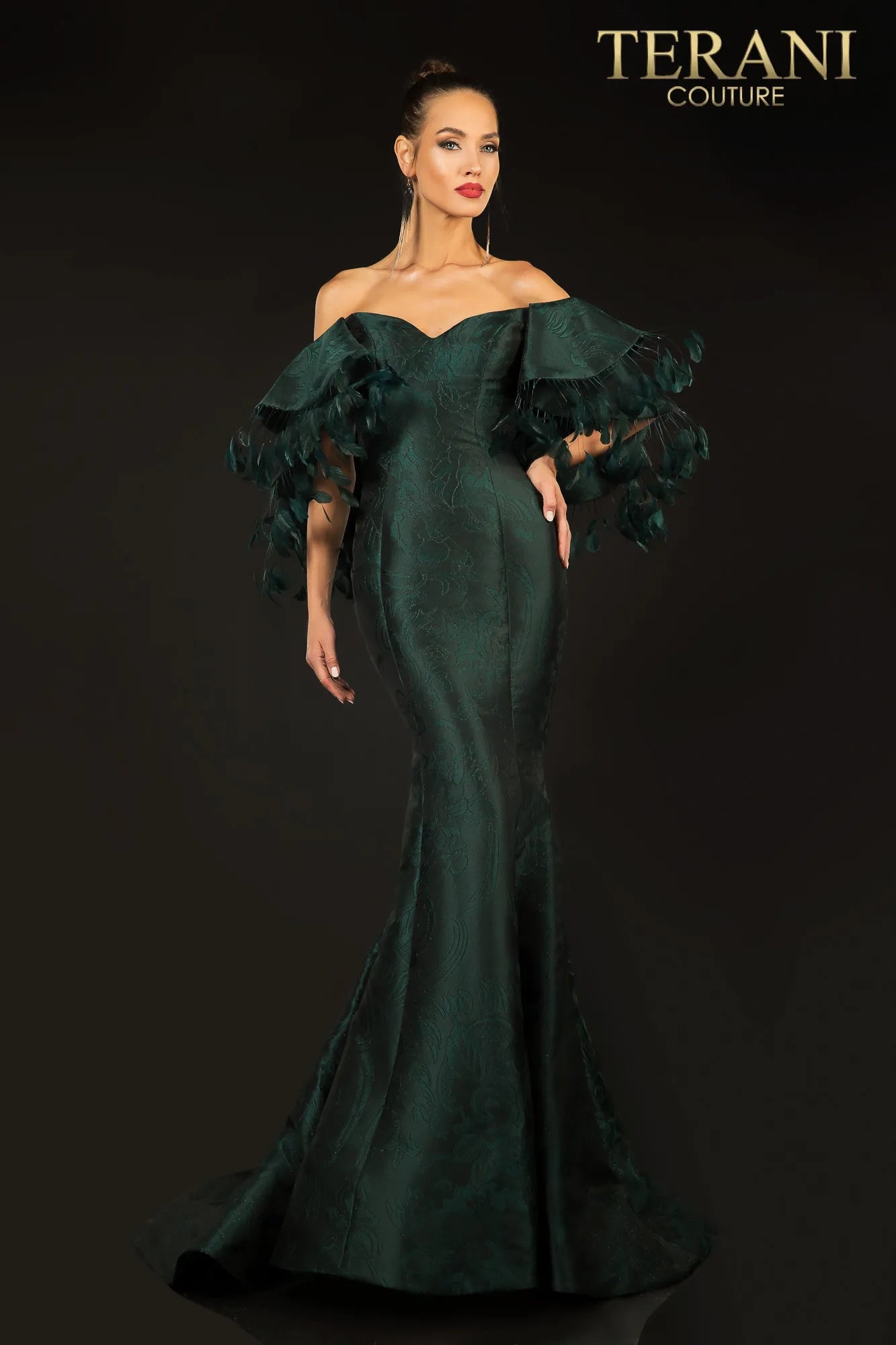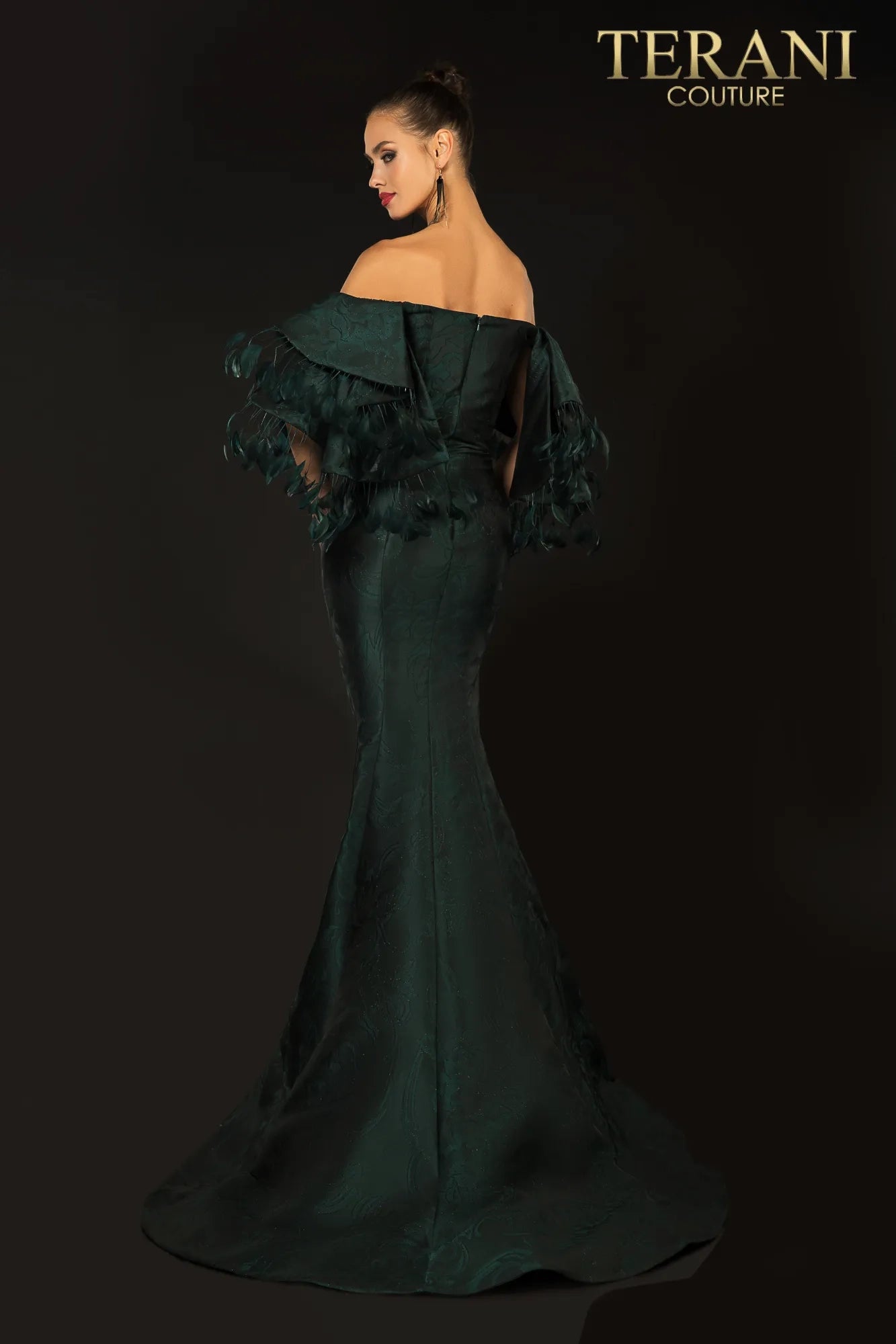 The UNK-2021 E2796 is a special occasion garment from Terani Couture, offered in a forest green color. Available in sizes 0, 2, 4, 6, 8, 10, 12, 14, 16, 18, 20, 22, and 24. Priced at $693.00.