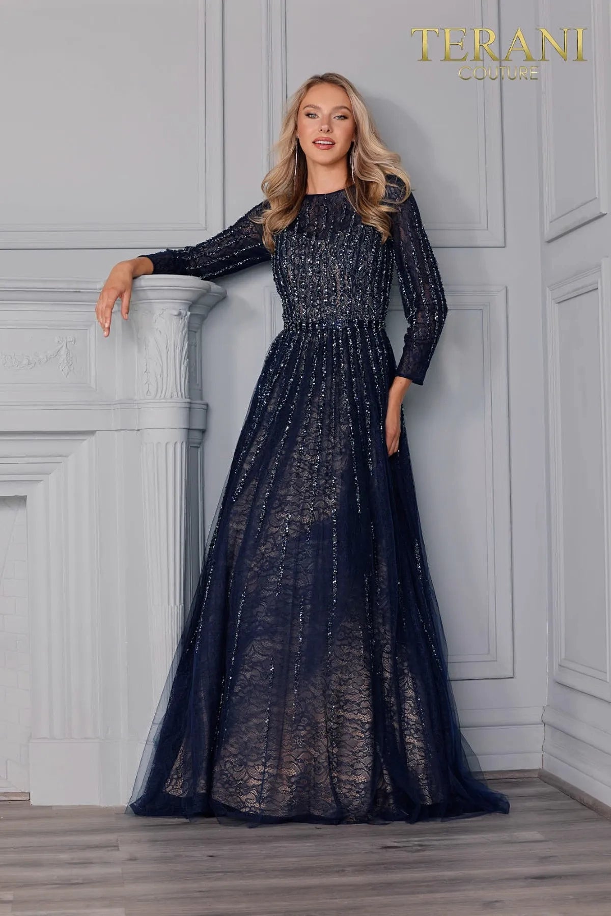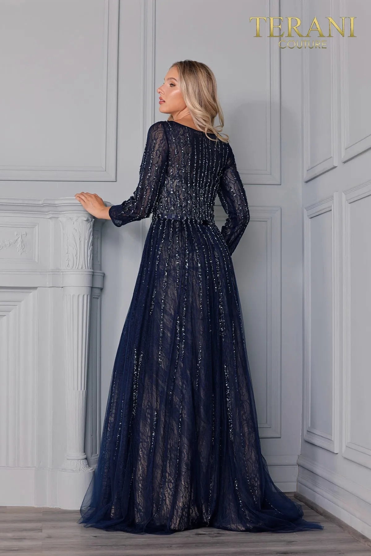 UNK-2021 M2973 is a stunning special occasion dress from Terani Couture. Available in a sophisticated Navy/Nude color combination, this dress is offered in sizes 0, 2, 4, 6, 8, 10, 12, 14, 16, 18, 20, 22, and 24. Priced at $957.00, this elegant design is perfect for making a memorable statement.