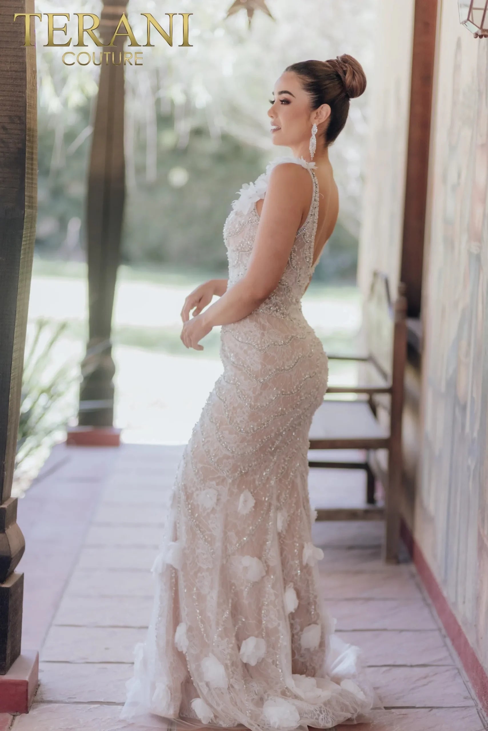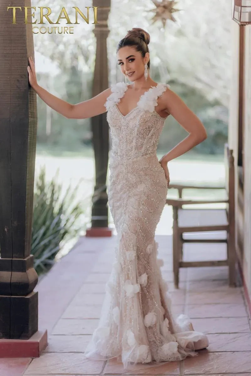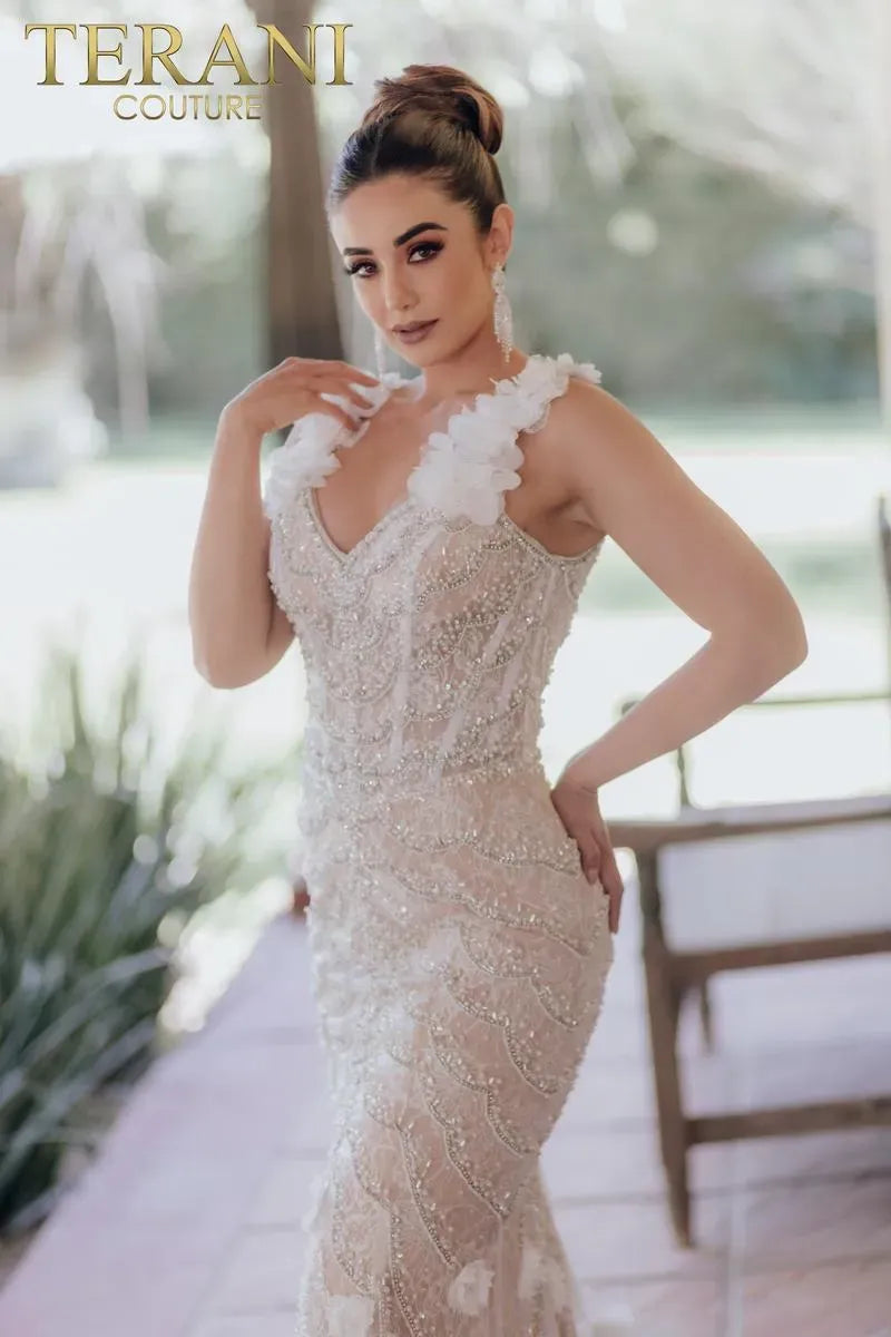 UNK-232 GL1447, a Terani Couture special occasion gown, is available for $1309.00. This elegant design comes in Blush and Ivory/Crystal. Sizes offered include 0, 2, 4, 6, 8, 10, 12, 14, 16, 18, 20, 22, and 24.