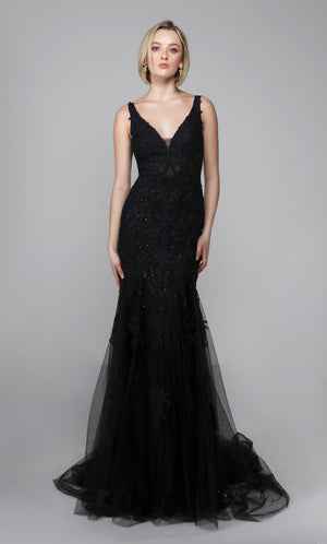 This style features a long dress with formal dress illusion detailing neckline flowy. Designed to feel elegant and confident, it’s a beautiful option for special occasions.