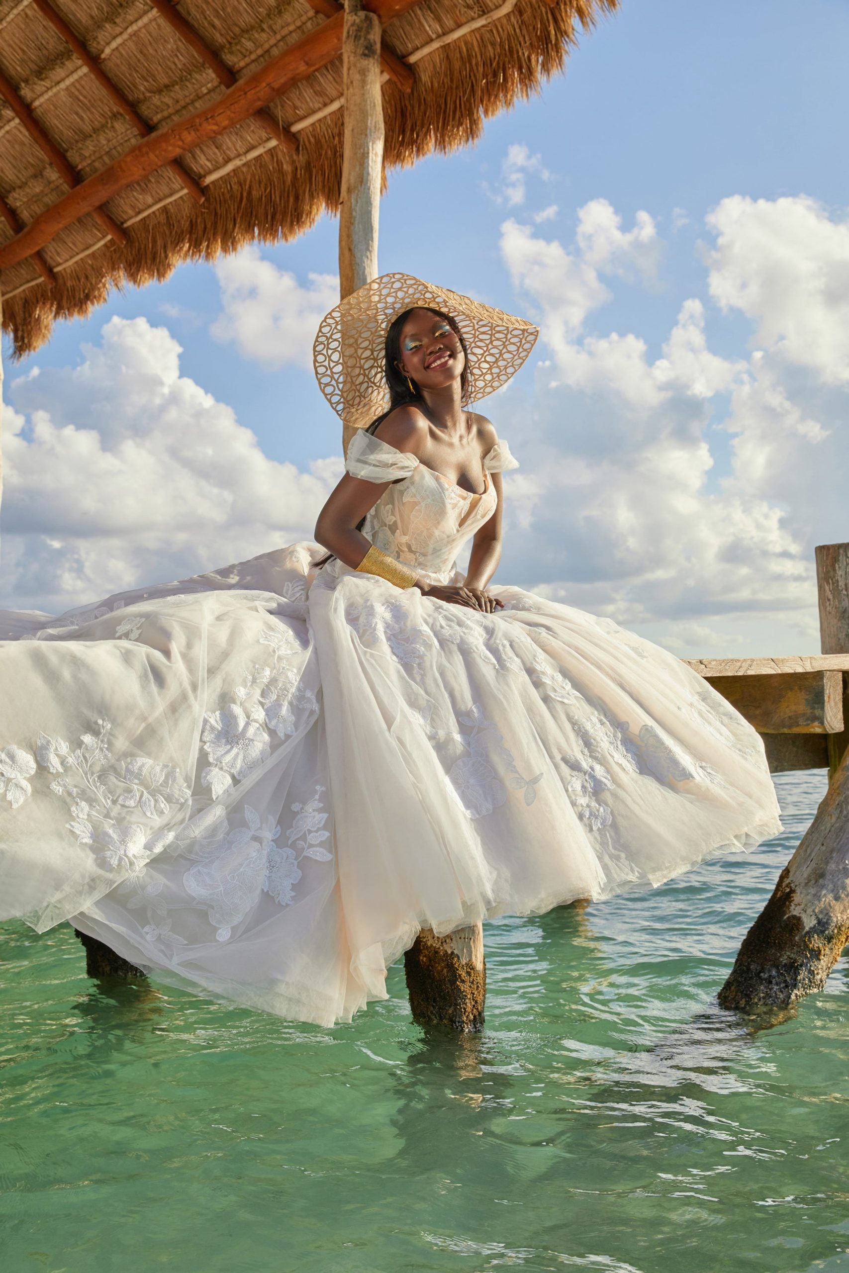 Allure Bridals presents the UNK-Ioana wedding dress. Available in Ivory/Nude and Lavender/Ivory/Nude color combinations. Sizes range from 000 to 24. This elegant gown offers a customizable fit for various body types.