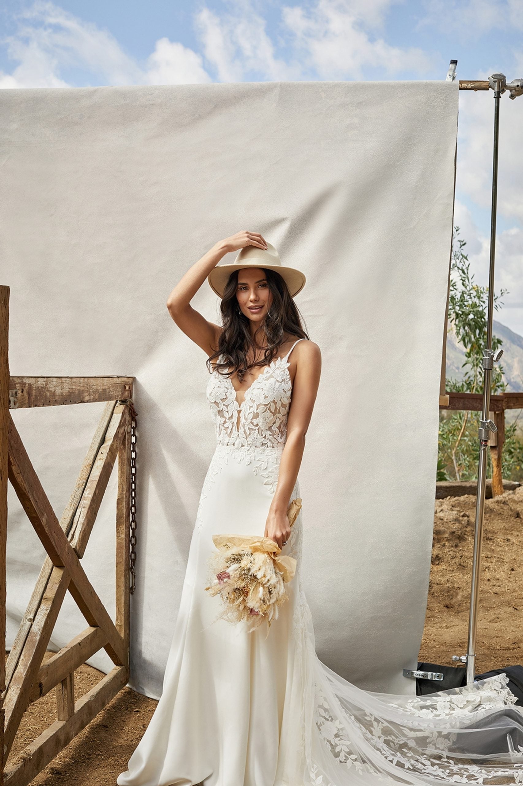 Allure Bridals presents the UNK-Kalani wedding dress. Available in Ivory, Champagne, or Nude, and sizes 000-24. The price is unavailable.
