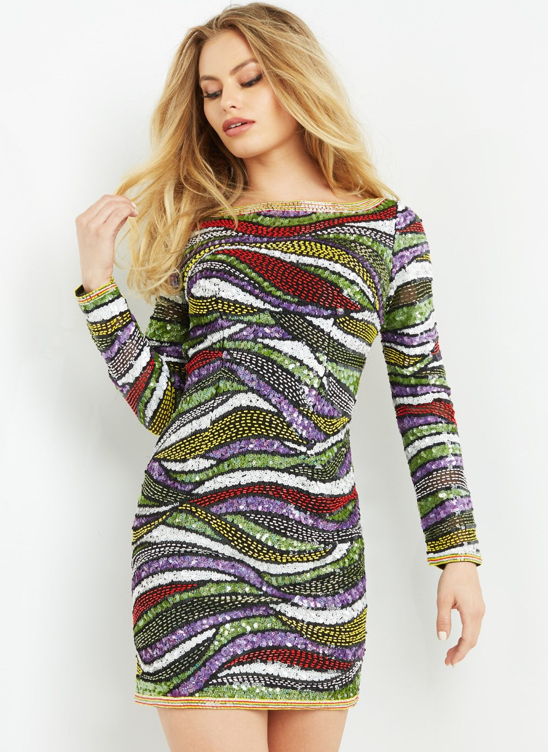 The Jovani JVN-1245 prom dress is available in sizes 00-24 and features a striking multi-colored design. Priced at $735.00, this elegant gown is perfect for your special occasion. A wide range of sizes ensures a perfect fit for every figure. This is a regular priced item, currently not on sale.