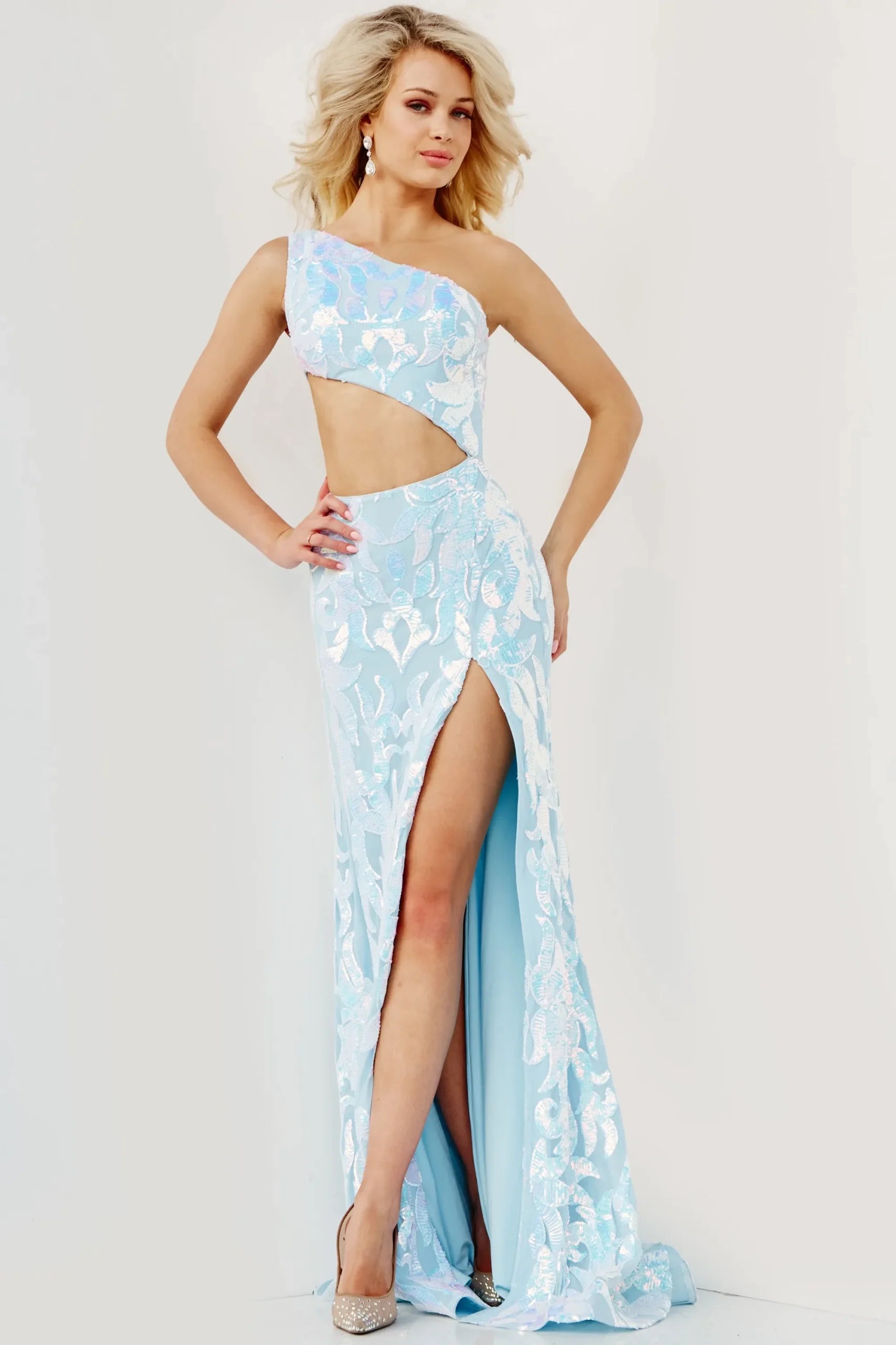 JVN-22853 is a Jovani special occasion dress, priced at $672.00. Available in sizes 00, 0, 2, 4, 6, 8, 10, 12, 14, 16, 18, 20, 22, and 24. Offered in Hot-Pink, Light Blue, light-pink, Lilac, orange, and Turquoise. Perfect for your next event.