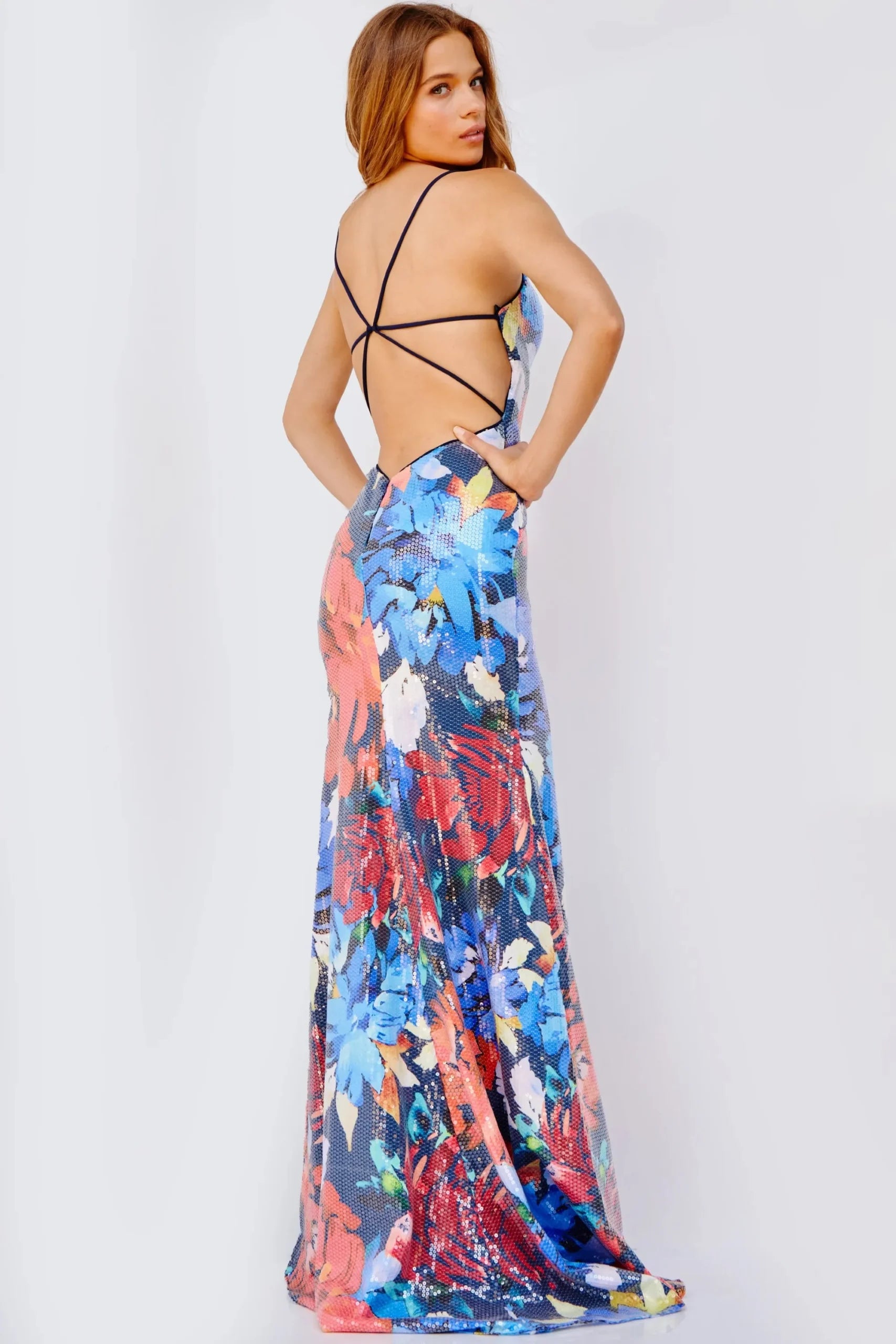 The Jovani JVN-23906 prom dress is available in sizes 0-24 and features a striking multi-colored design. Priced at $620.00, this elegant gown is perfect for your special occasion. A variety of sizes ensures a perfect fit for every figure. This Jovani creation is a beautiful choice for prom night.