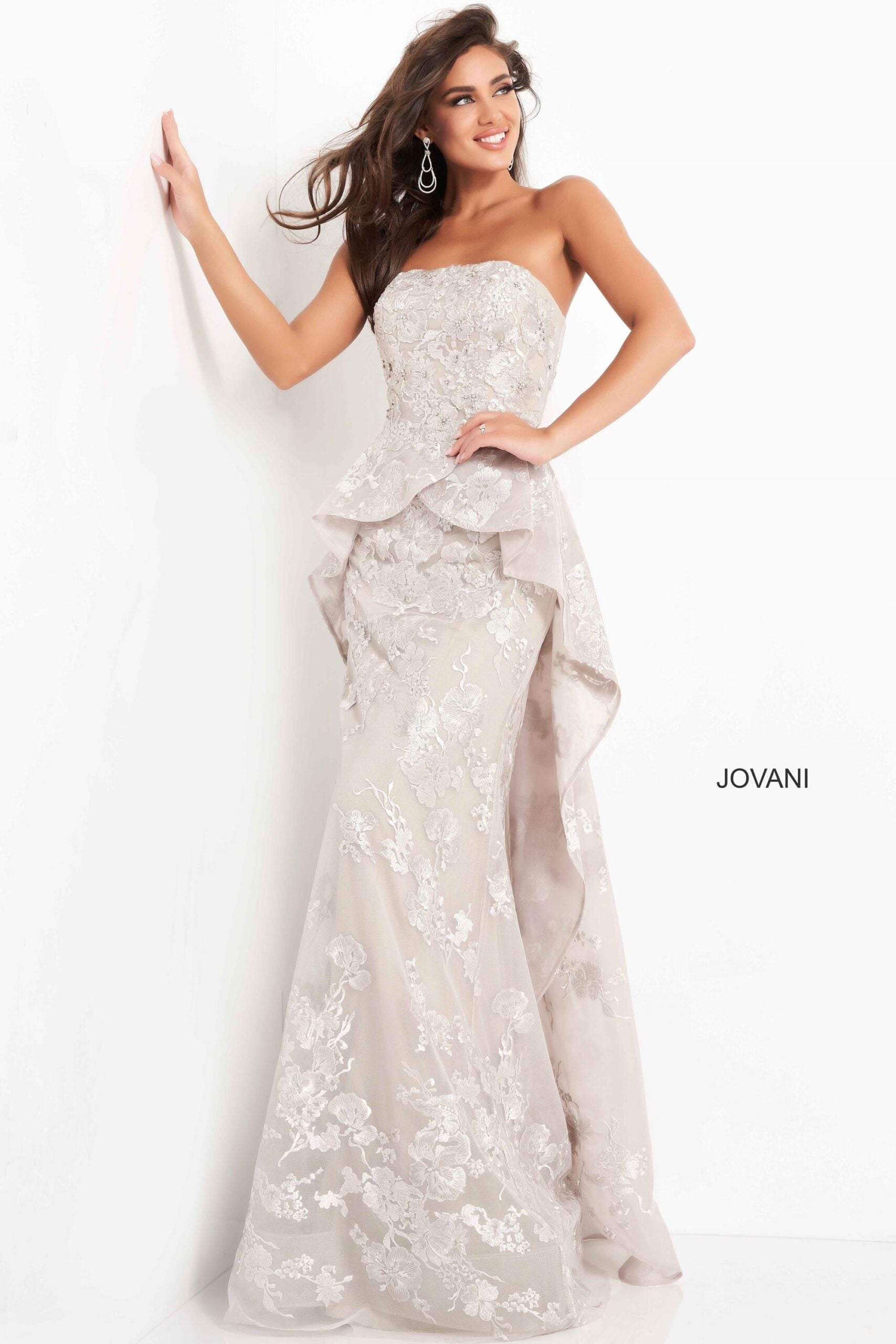 The Jovani JVN-2966 prom dress is a stunning silver gown available in sizes 0-24. Priced at $767.00, this elegant design is perfect for your special occasion. A variety of sizes ensures a perfect fit for every figure. This is a regular priced item and currently not on sale. Choose the JVN-2966 for a memorable prom night.
