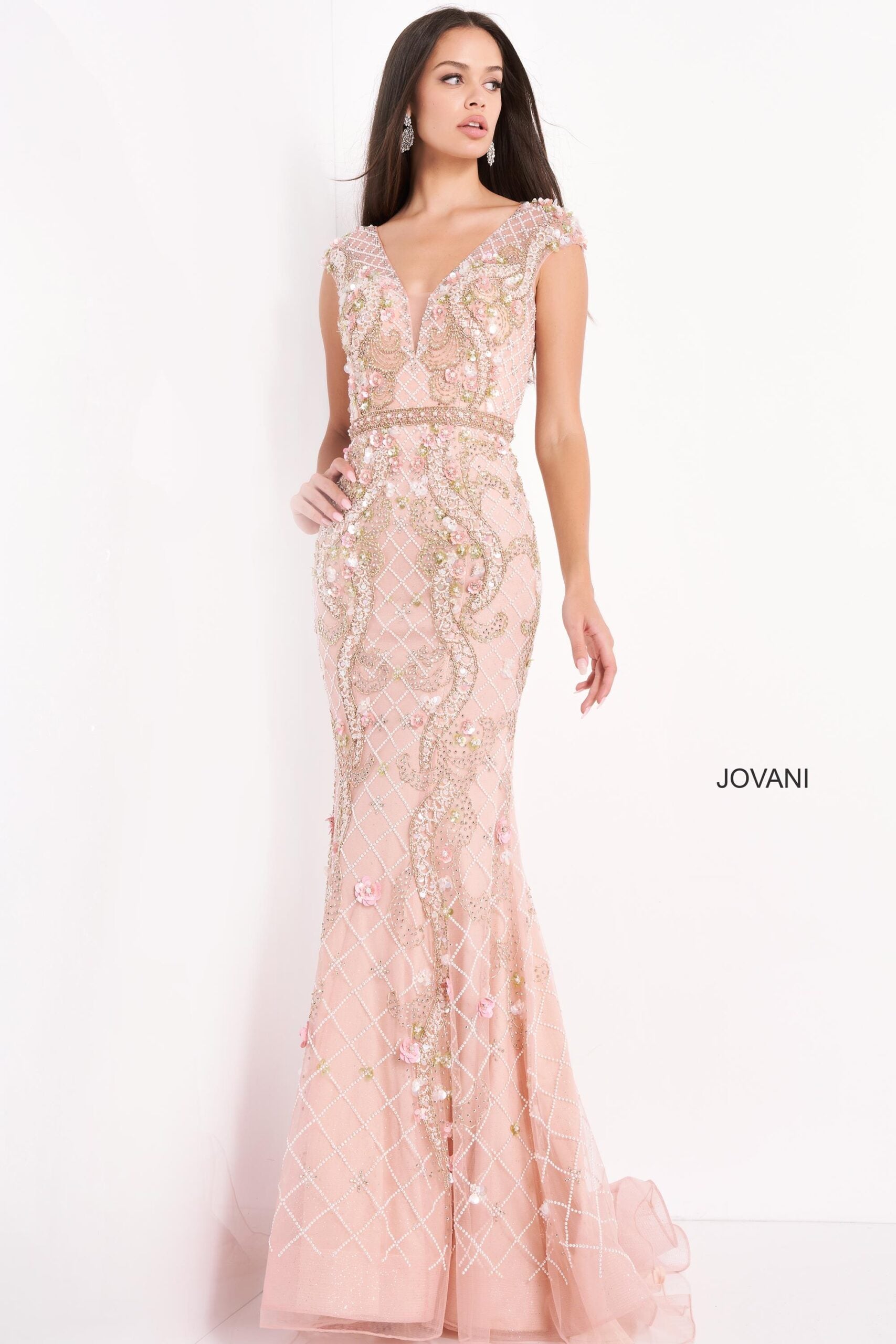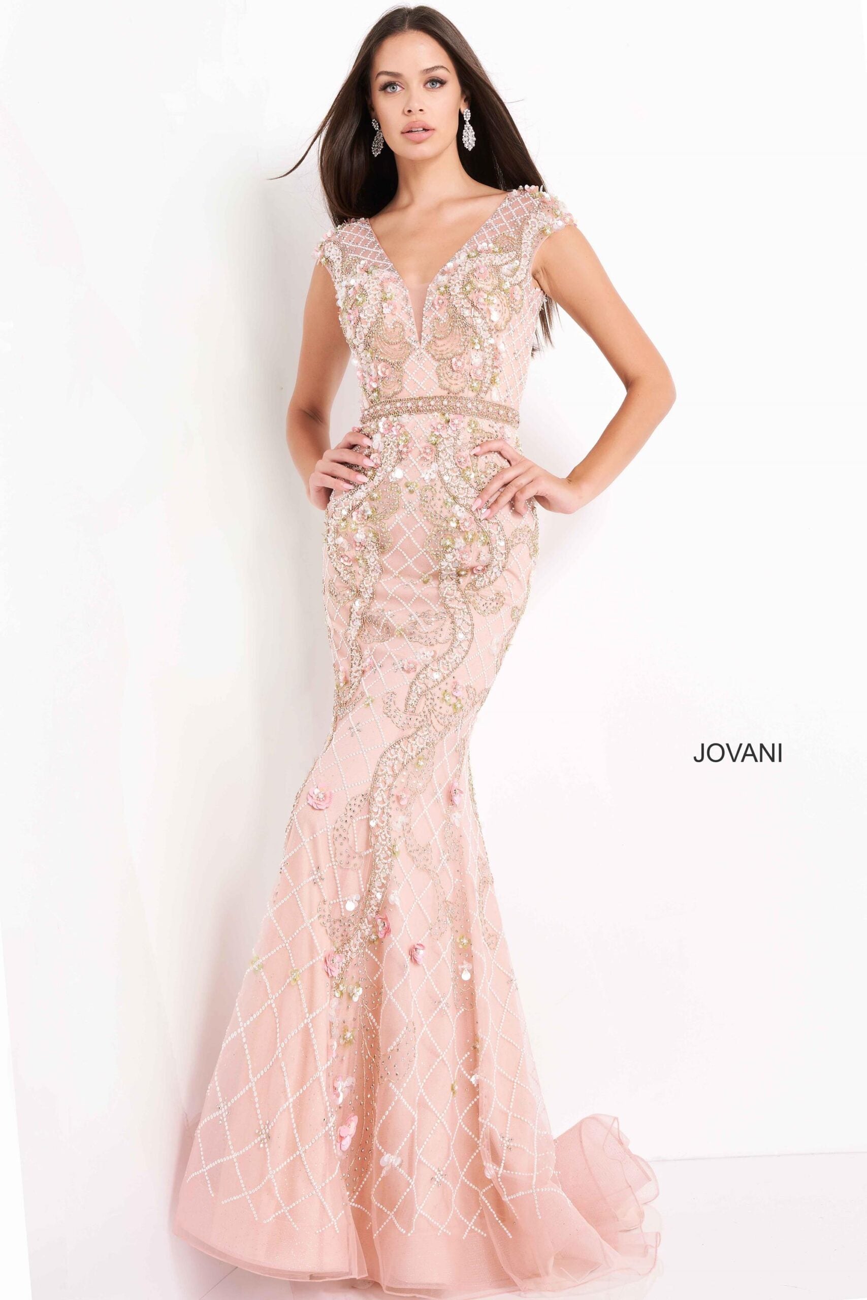 The Jovani JVN-3129 prom dress is available in Blush/Nude. Priced at $1365.00, this stunning gown is offered in sizes 00, 0, 2, 4, 6, 8, 10, 12, 14, 16, 18, 20, 22, and 24. Currently no sale price is offered. This elegant Jovani design is perfect for your special prom night.
