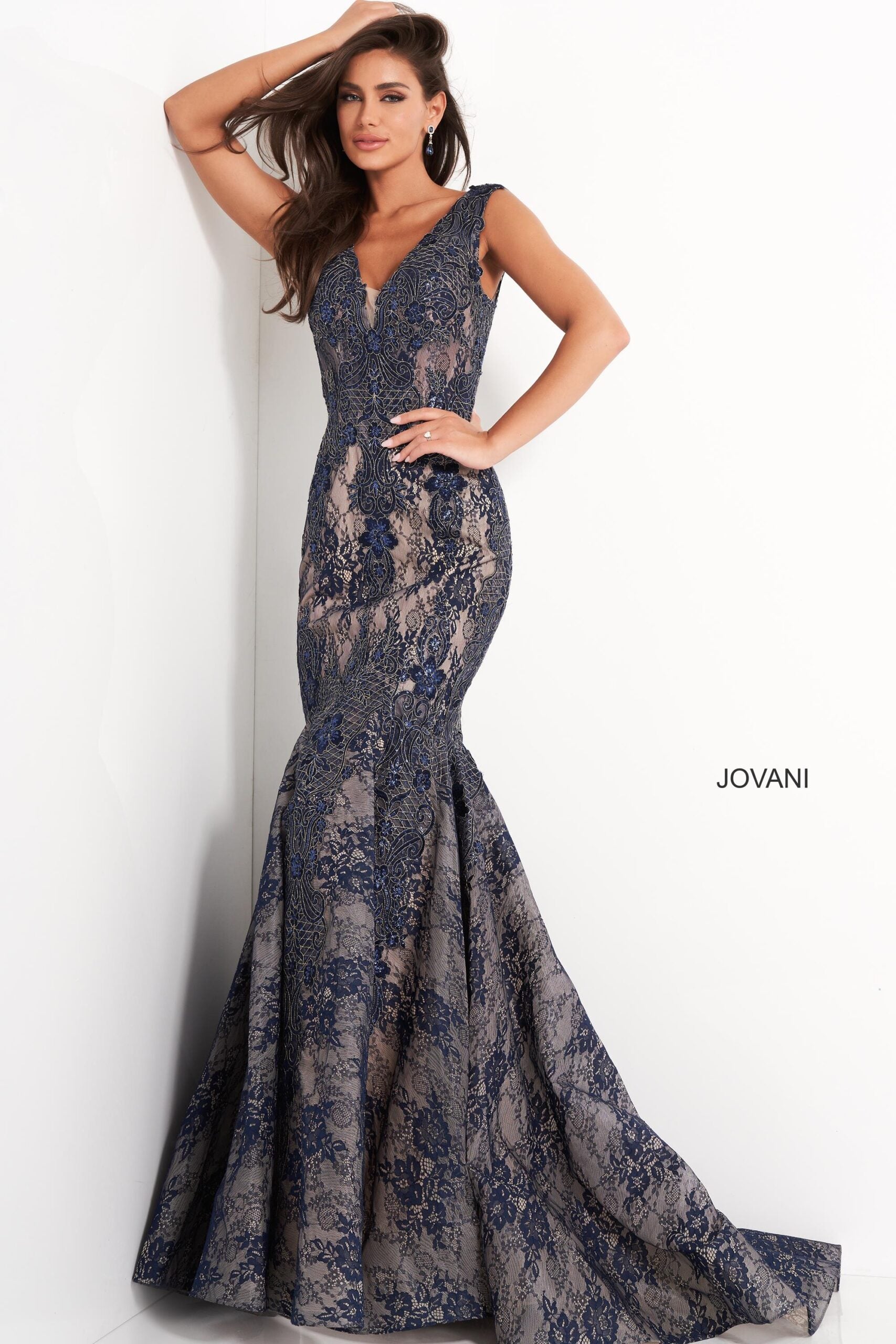 The Jovani JVN-4585 prom dress is available in Cafe and Navy, priced at $620. Sizes range from 00 to 24, offering a wide selection to ensure the perfect fit. This elegant Jovani design is perfect for your special occasion.