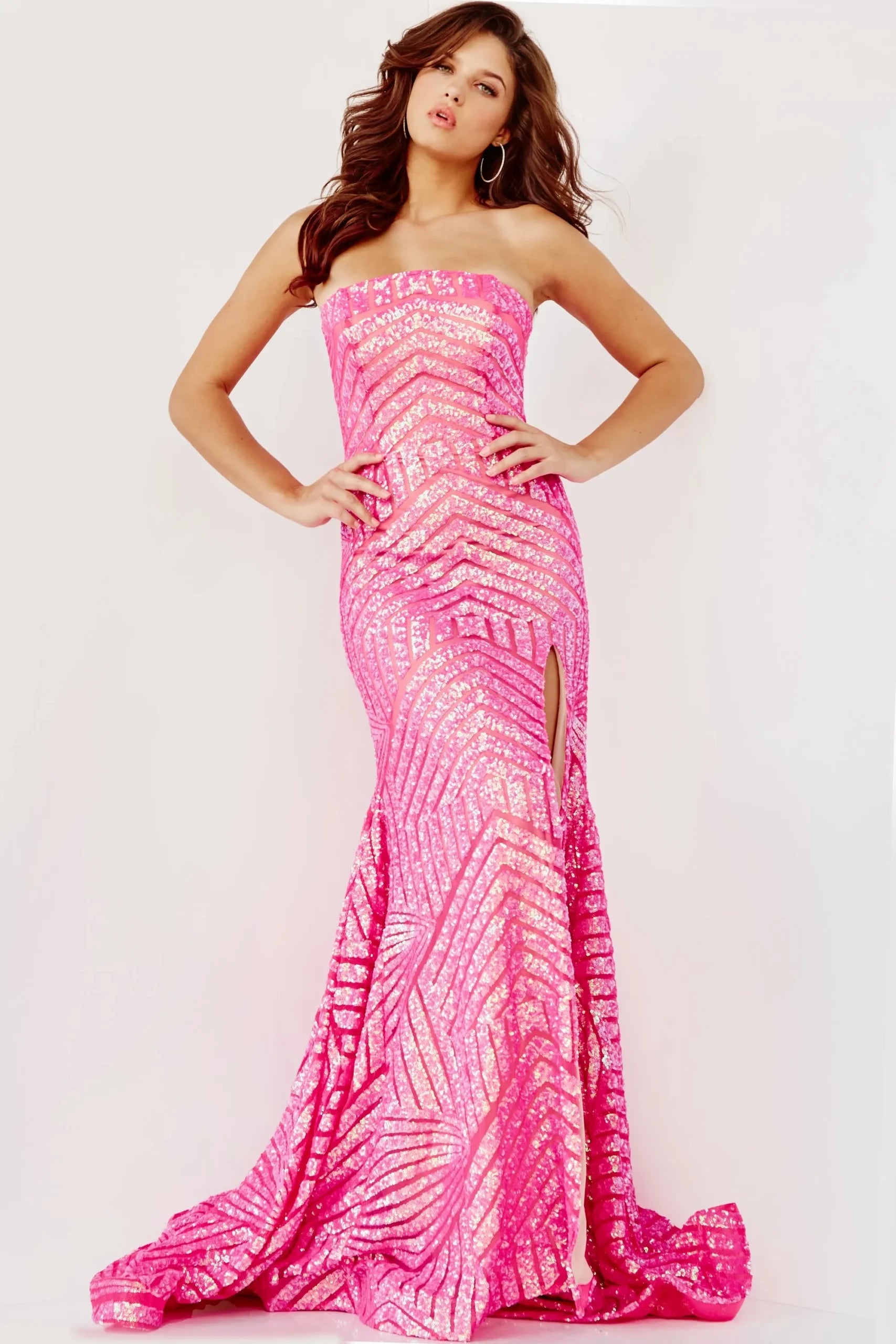 The Jovani JVN-6394 prom dress is available in a range of sizes 0-24 and colors including Blush/Nude, Neon Hot Pink, Pale Green, Purple, Red, Royal, and White. Priced at $714.00, this elegant gown is perfect for your special occasion. A variety of sizes ensures a perfect fit for every figure. This stylish Jovani creation is ready to make a statement at your prom.
