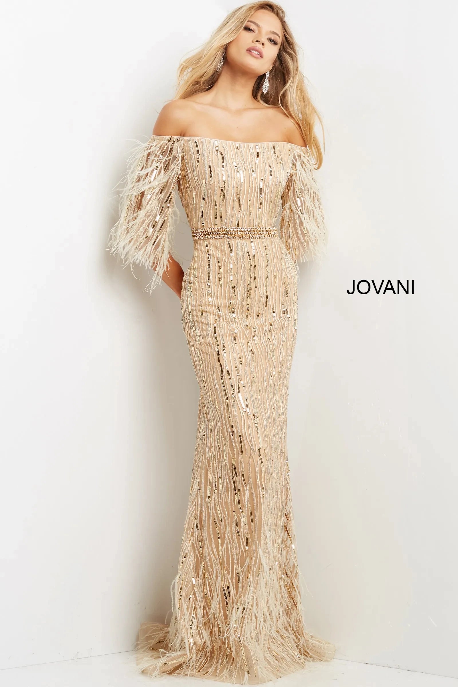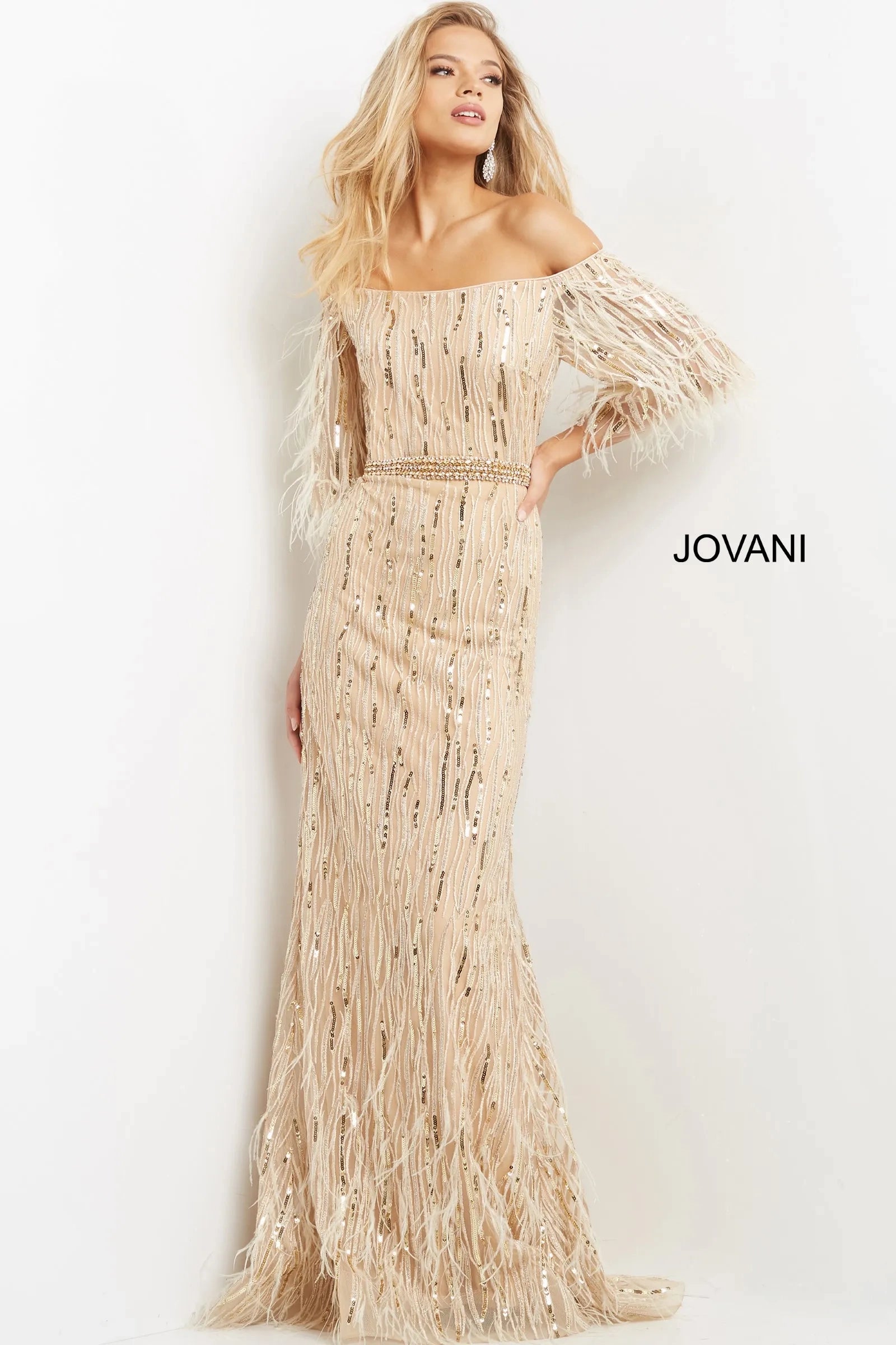 The Jovani JVN-7195 is a stunning special occasion gown priced at $1040. Available in sizes 00-24 and champagne color, this elegant dress is perfect for a variety of formal events. Currently no sale is running; the regular price reflects the current cost.