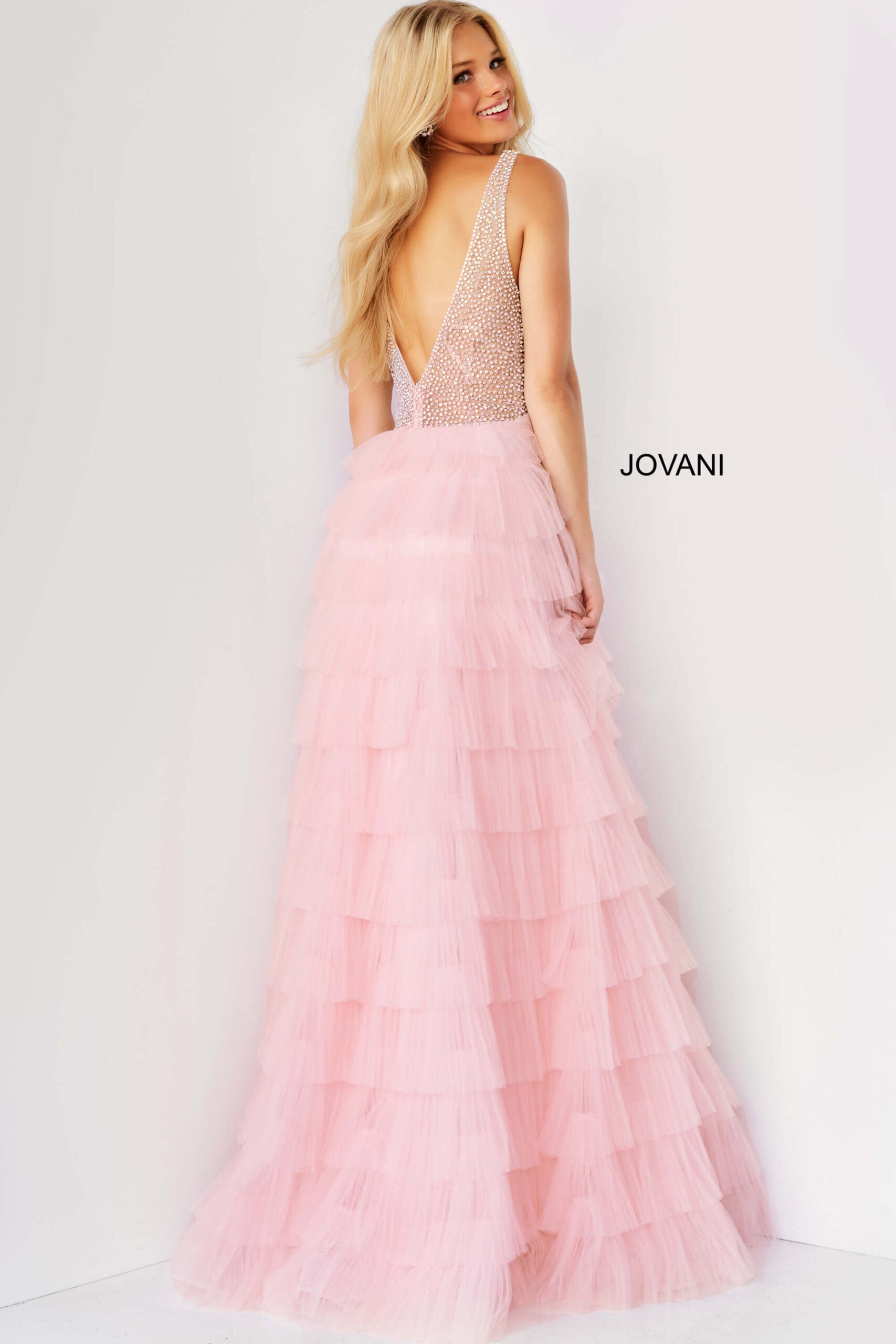 The JVN-7235 is a stunning special occasion gown from Jovani, priced at $1,040. Available in blush, light blue, lilac, and white, this dress comes in a wide range of sizes from 00 to 24, including 0, 2, 4, 6, 8, 10, 12, 14, 16, 18, 20, and 22, ensuring a perfect fit for various body types.