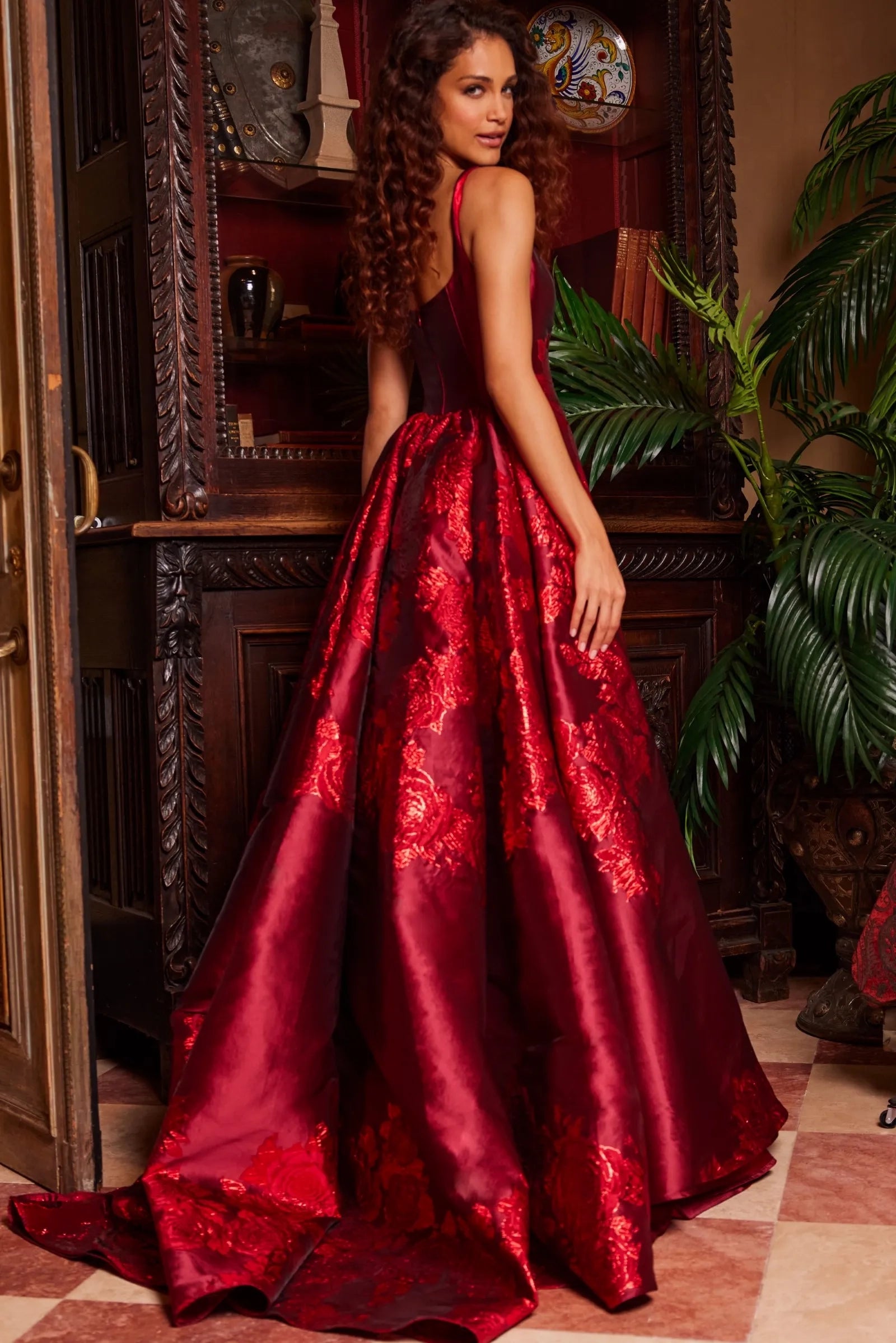 The Jovani JVN-7441 prom dress is available in sizes 0-24 and in Green, Purple, and Red. This stunning gown is priced at $714.00. Currently, no sale price is offered. Choose your perfect fit and color for your special occasion.