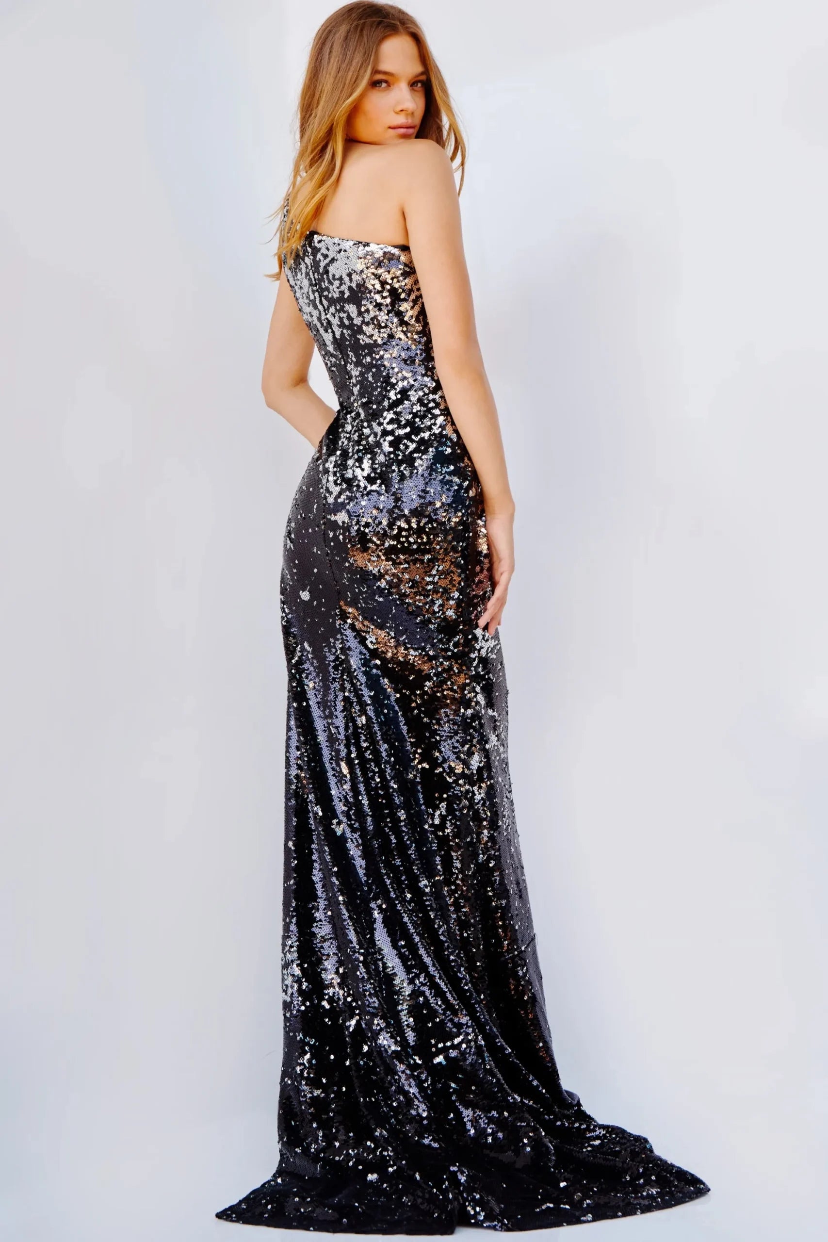 The Jovani JVN-9895 prom dress is a sophisticated black gown available in sizes 00-24. Priced at $620.00, this elegant design is perfect for your special occasion. A variety of sizes ensures a perfect fit for every figure. This stunning Jovani creation is ready to make you shine at prom.
