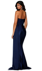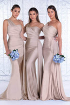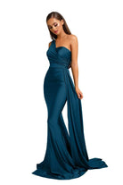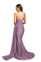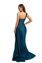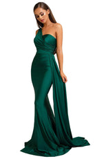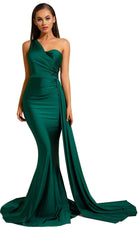 Surround yourself with admiring stares when you don this curve-hugging evening gown by Portia and Scarlett PS6321. This mattified stretch sexy piece flaunts an asymmetrical one-shoulder neckline with a sweetheart-shaped bust, and a ruched fitted bodice paired with a mid-open back. The ravishing sheath skirt tapers to full length with a floor-sweeping train that dramatically goes perfectly with the side overlay drape accent. Dress up elegantly while flattering your figure in this stunning Portia and Scarlett PS6321 creation. Models are wearing the Deep Red, Emerald, Navy, Plum, Mauve, Stone, Teal, Ice, and Red colors.
