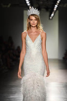 | Details: | Spaghetti strap, Fitted bodice, Bead Embellished, Feathers, Open Back, Back Zipper Closure, Sweep train |