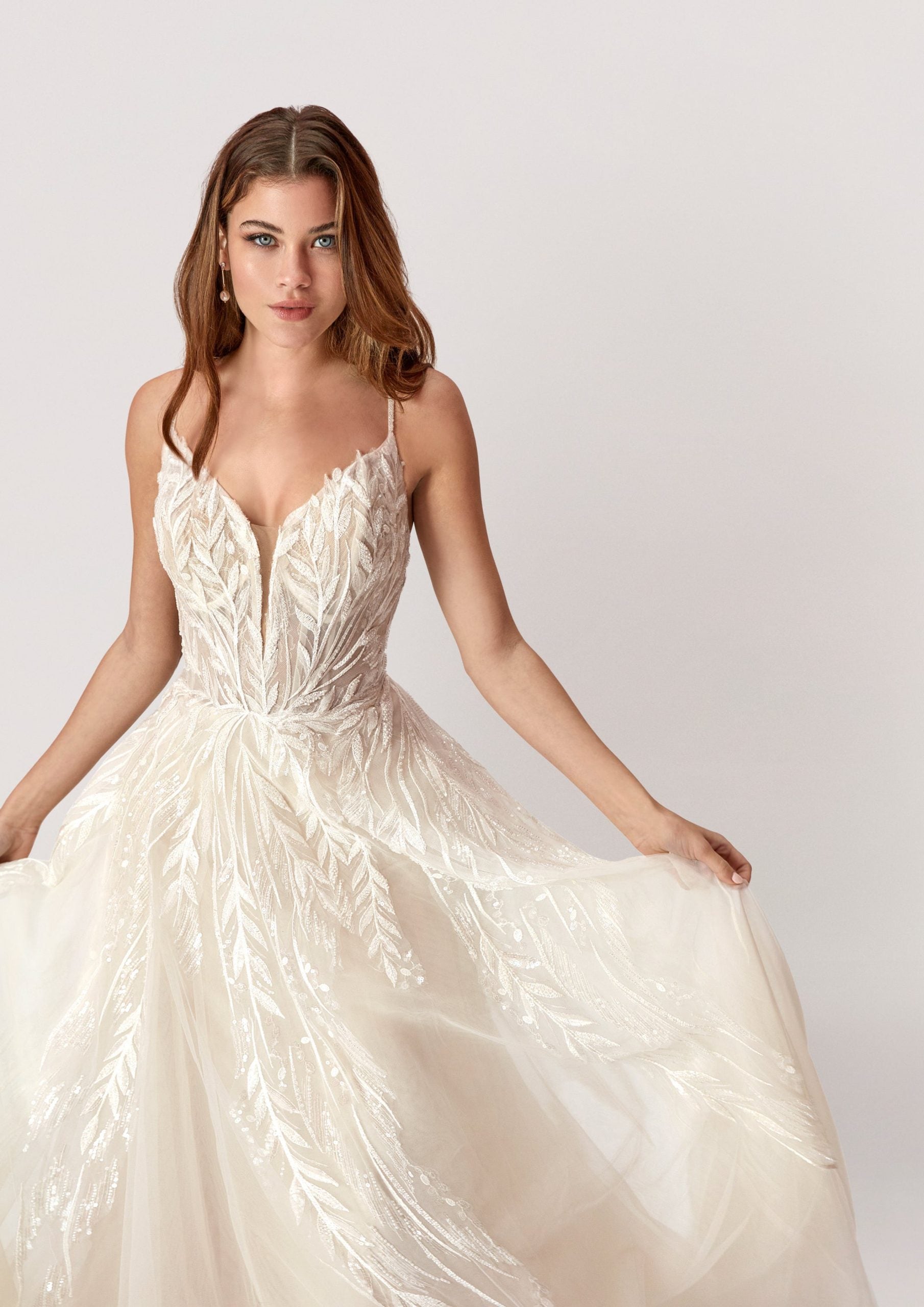 The UNK-Gracie wedding dress, by Allure Bridals, is available in Almond/Champagne/Ivory/Nude and Ivory/Nude color options. Sizes range from 000 to 24, including 0, 00, 2, 4, 6, 8, 10, 12, 14, 16, 18, 20, and 22.