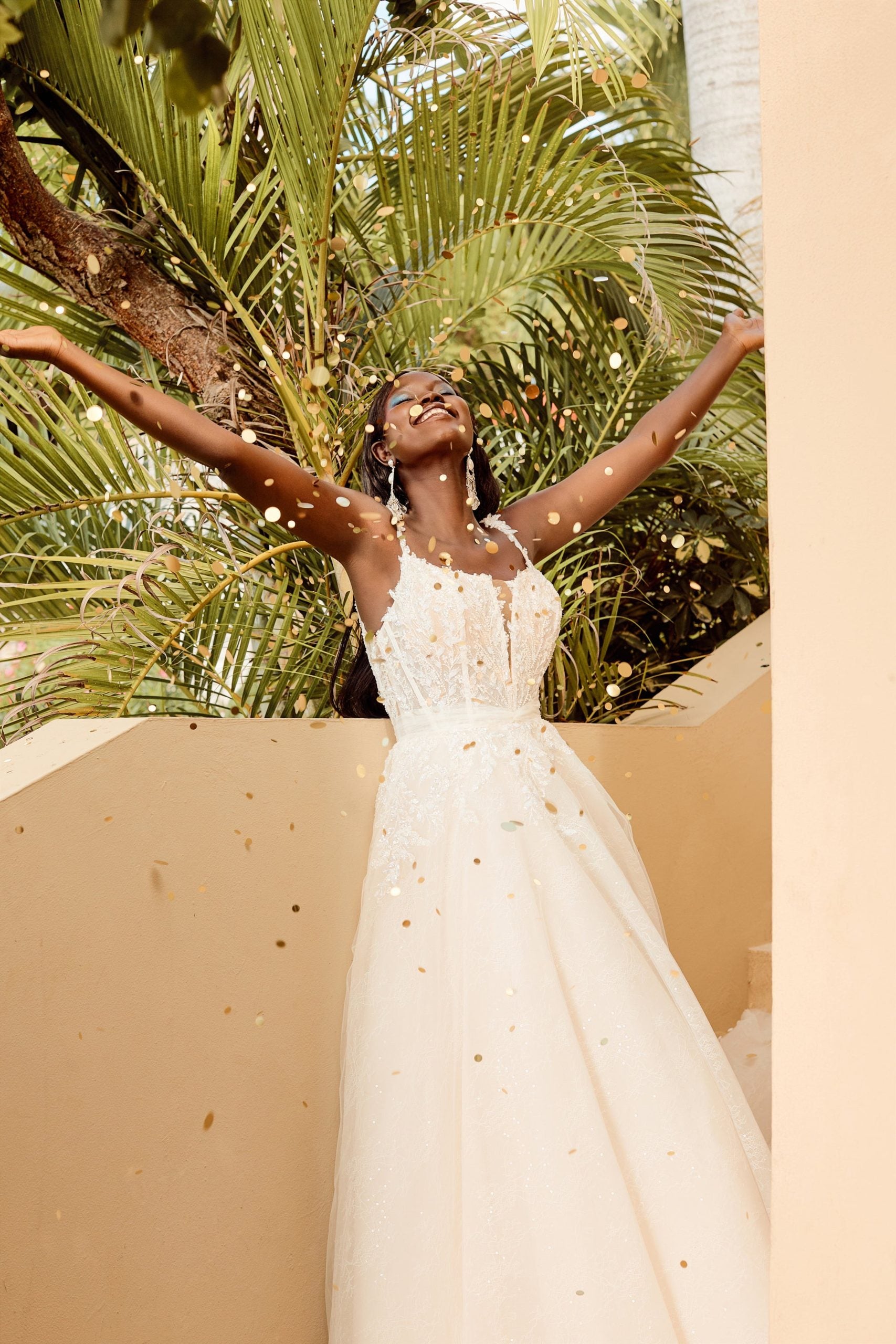 Allure Bridals presents the UNK-Imani wedding dress. Available in Desert/Champagne/Lavender/Ivory/Nude and Ivory/Nude color options. Sizes range from 000 to 24.